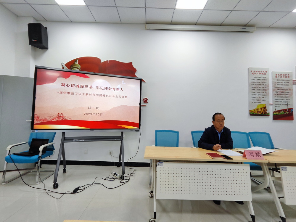 推进会结束后,刘斌书记为全体党员和群众开展了题为“凝心铸魂强根基、牢记使命育新人——深学思悟习近平新时代中国特色社会主义思想”的主题教育专题党课。党课围绕三方面进行,一是要深刻领悟“两个确立”的决定性意义,坚决做到“两个维护”,二是要用习近平新时代中国特色社会主义思想凝心铸魂,三是要用习近平新时代中国特色社会主义思想指导教育事业,推动教育发展。