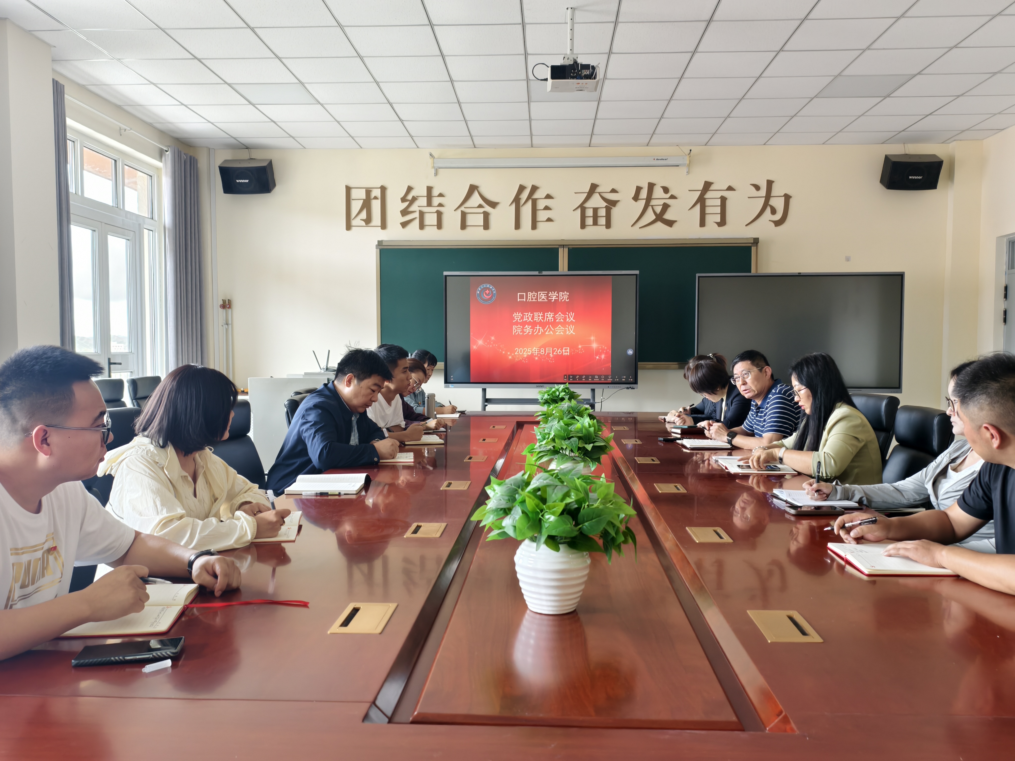 8月26日,口腔医学院召开2025-2026学年第一学期开学准备会及党政联席会议,全面部署新学期重点工作,会议由郭艳玲主持。
