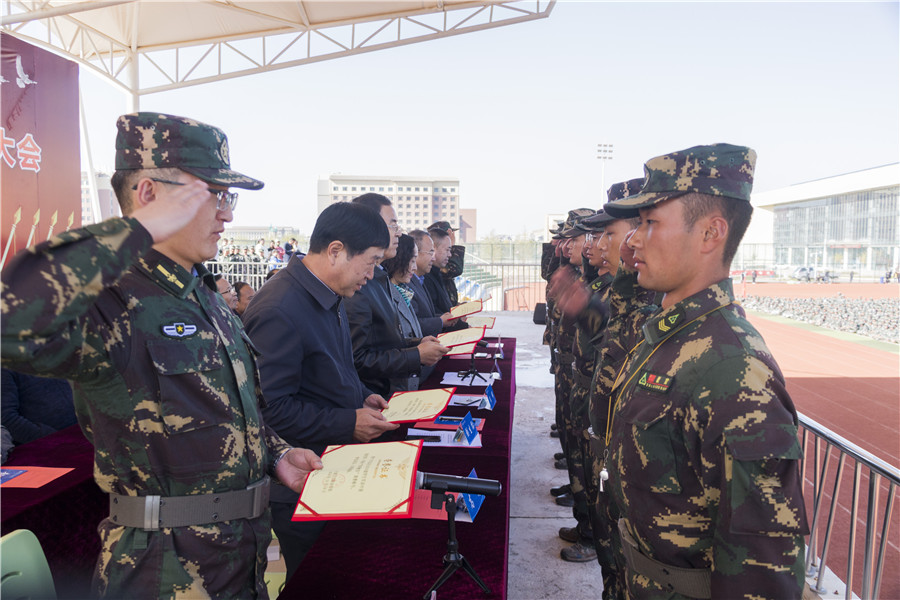 2019年10月18日下午14:00时,2019级学生军训汇报表演暨总结表彰大会在学校田径场召开,学校校长任晖及在家校领导、承训单位领导、相关处室负责人、二级学院负责人、2019级辅导员、班主任及全体参训学生参会,大会由康逢民副校长主持。3800余名2019级同学参加本次军训。