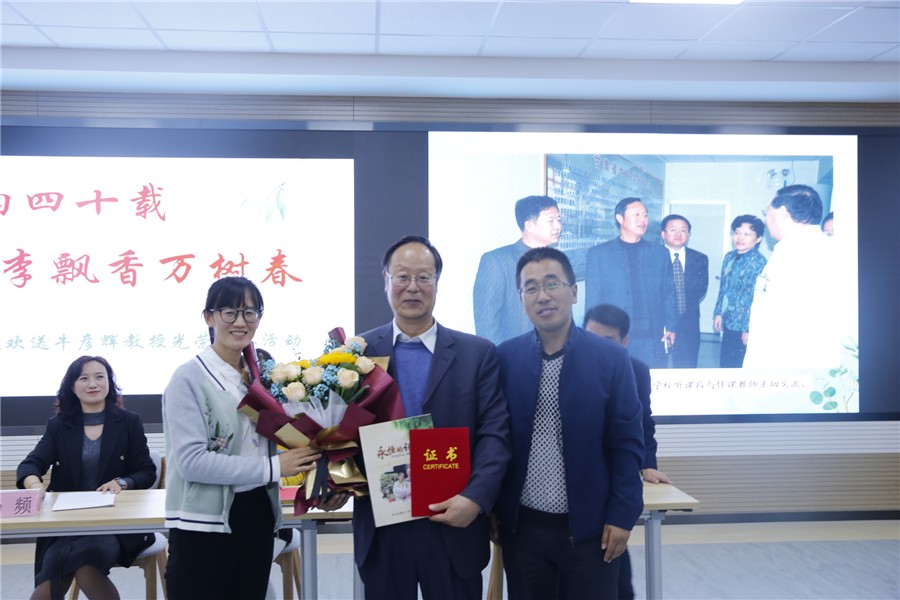 为了营造尊师重教的良好氛围,传承老一辈教师爱岗敬业、无私奉献的精神,营造尊重劳动、尊重知识、尊重人才、尊重创造的浓厚氛围,向为学校建设发展做出重要贡献的退休教职工表达敬意,增强教职工的归属感和职业荣誉感,4月27日下午,中医药学院党总支为牛彦辉教授隆重举行了光荣退休活动。学校副校长张军荣和中医药学院全体教职工五十余人欢聚一堂,共同祝贺牛彦辉教授光荣退休。