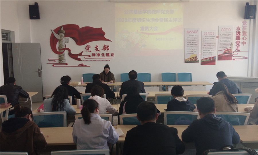 3月22日下午,公共基础学院教师党支部召开2020年度组织生活会暨民主评议党员大会。会议由教师党支部书记刘慧主持,学校纪委书记刘斌、学院党总支书记邓岩出席会议进行督导,公共基础学院全体党员参加会议。