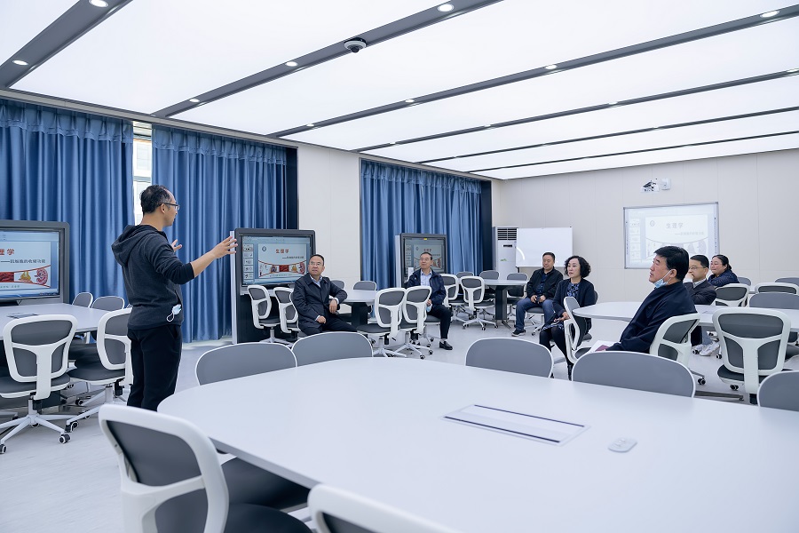 信息中心主任杜学海向校领导班子成员汇报了学校 “四平台两中心”数字校园现阶段运行总体情况,校领导班子成员实地调研了创新数字医学中心和教师发展中心,在平板课堂一起体验了平板操作下的人体解剖、在模拟医院看到了虚拟环境中流程清晰的护理操作,在PACS教室有上百万份的影像资料,虚拟解剖室、智慧互动教室为小组教学的开展提供了优质的硬件保障,录播直播教室、课工场、快课工坊为学校打造线上线下结合的“金课”奠定了良好的基础,教师沙龙为学校“青蓝工程”的实施提供了更为便捷的环境,校园电视台中卫职新闻样片已经出炉,中心机房为学校网络安全工作做好了充分的准备。