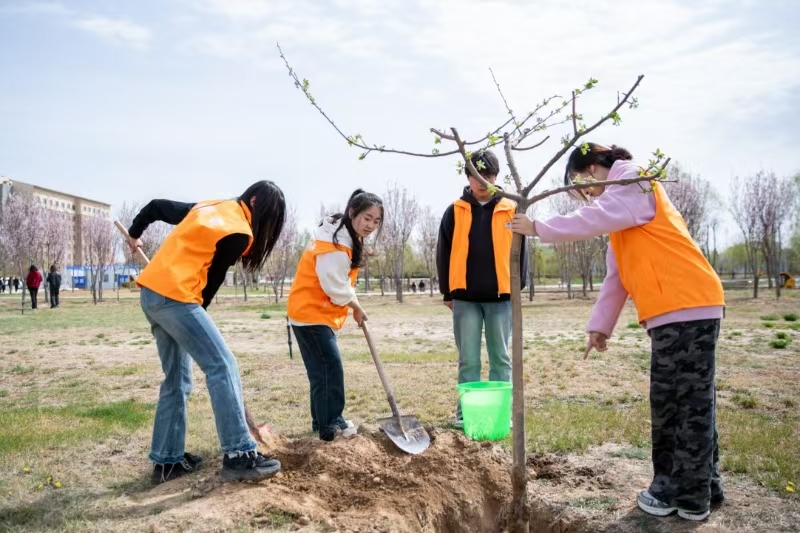 除本次集中植树活动之外,近期,服务保障处充分利用春耕时机,已在校园行道旁、绿化区及土地预留区广泛栽种国槐、山楂、海棠、山杏等树苗600余株,完成草坪高羊茅、苜蓿、太阳花等播种数余亩,后期,还将根据节气持续移栽月季、蔷薇、牡丹等灌木,常规开展修剪、缺损补种等工作,并充分考虑高原地区气候特点、园艺设计理念,花期衔接,色彩搭配,力求四季常绿、三季有花,打造层次分明、生态和谐的校园景观,为师生营造宜学宜居的环境。