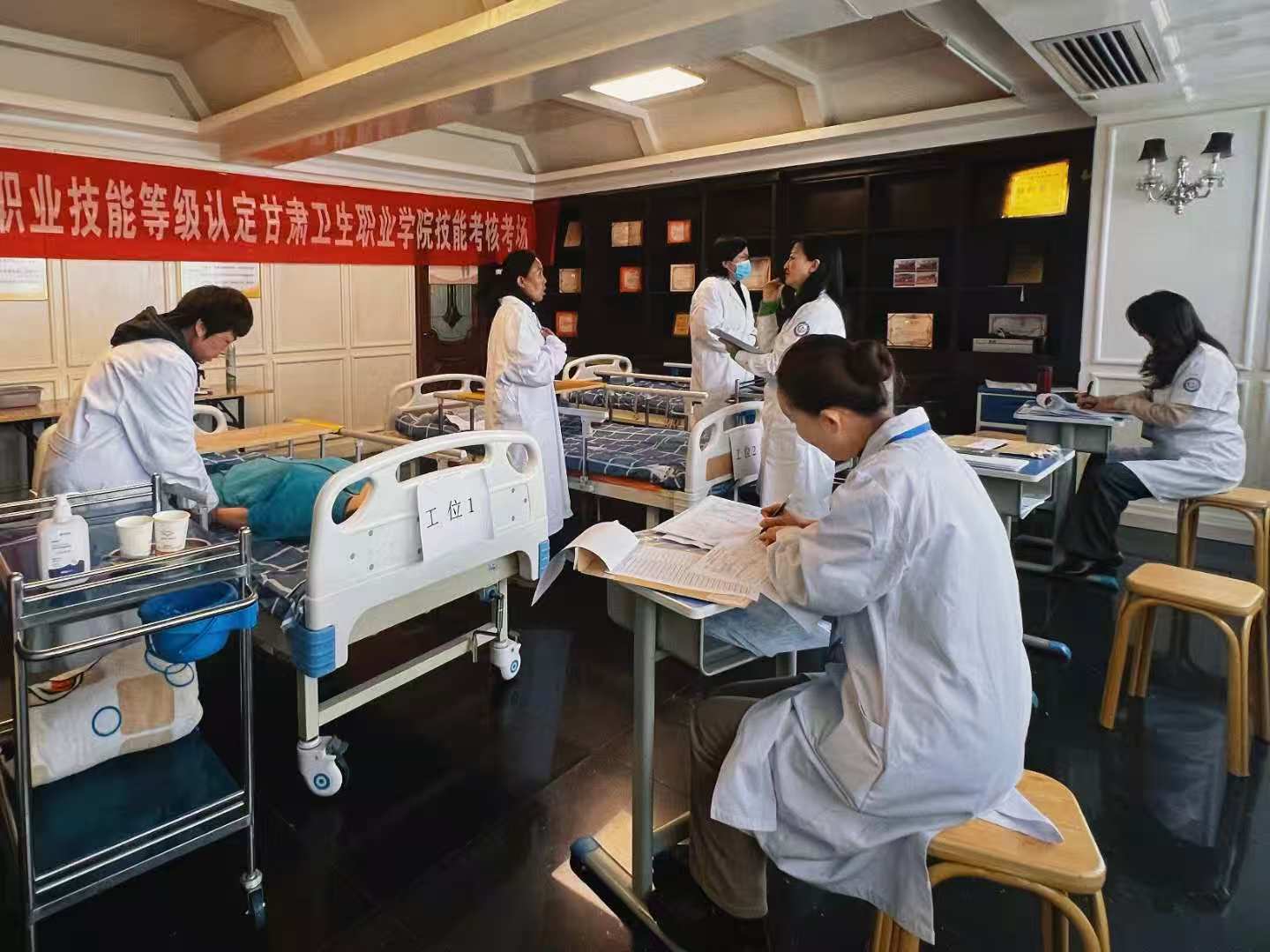 10 月 25 日,学校与兰州众民职业技能培训学校联合组织开 展养老护理员职业技能等级认定工作。本次认定采取"理论认定+ 技能认定"相结合的方式,对 58 名社会考生进行综合能力认定。