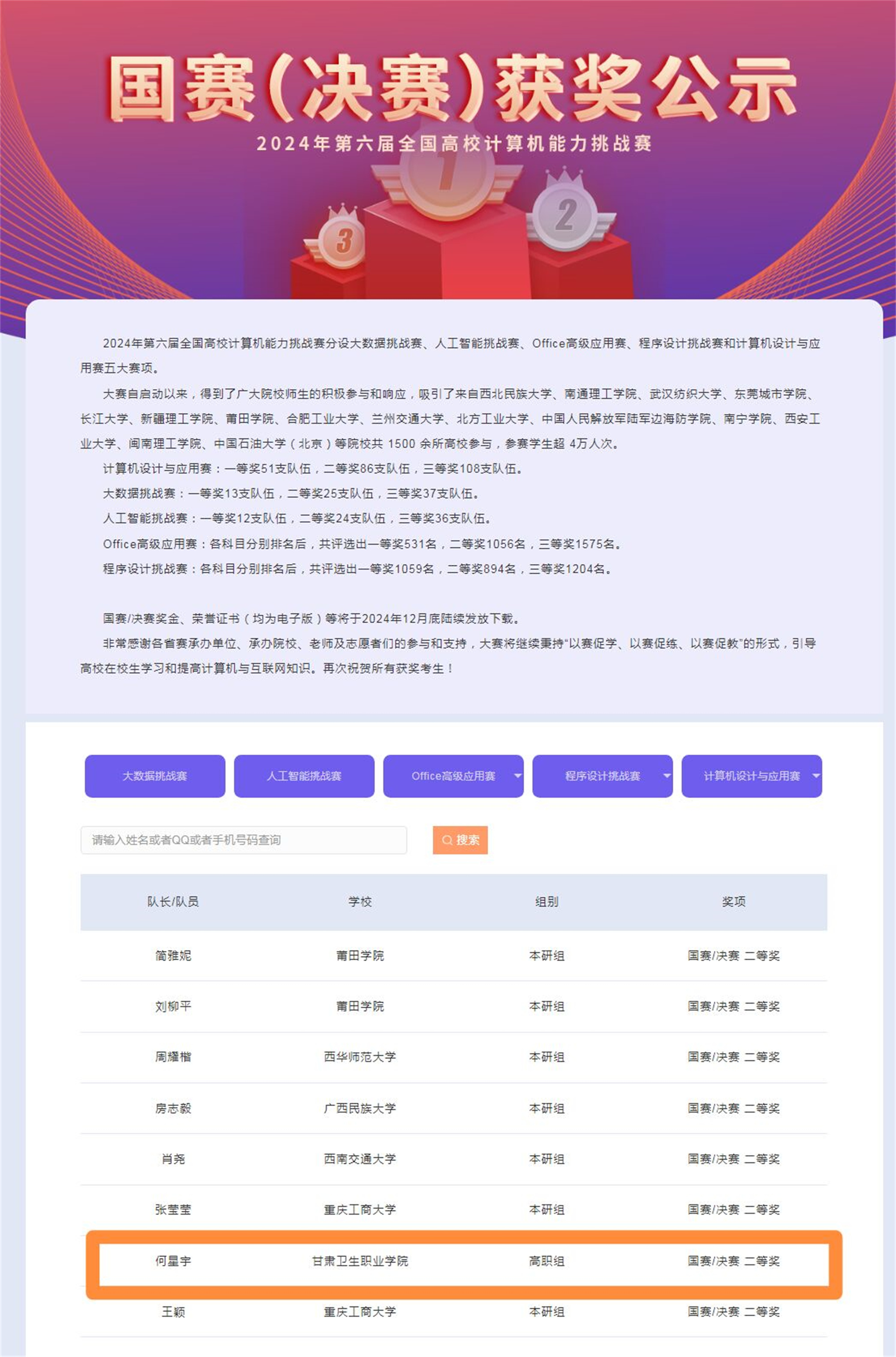 12月11日,第六届全国高校计算机能力挑战赛office高级应用赛全国总决赛圆满落幕,我校选手李鑫、何星宇、李致昊分获Word科目和PowerPoint科目的全国二等奖。