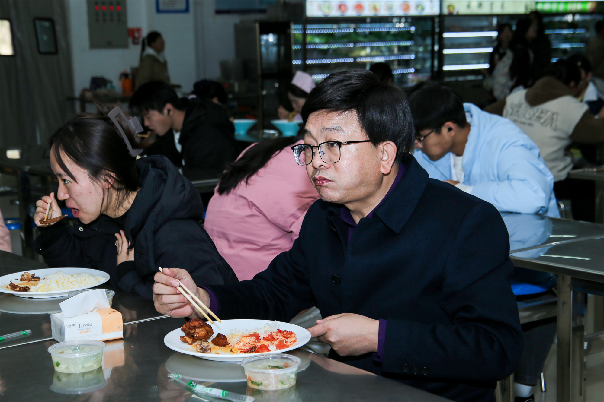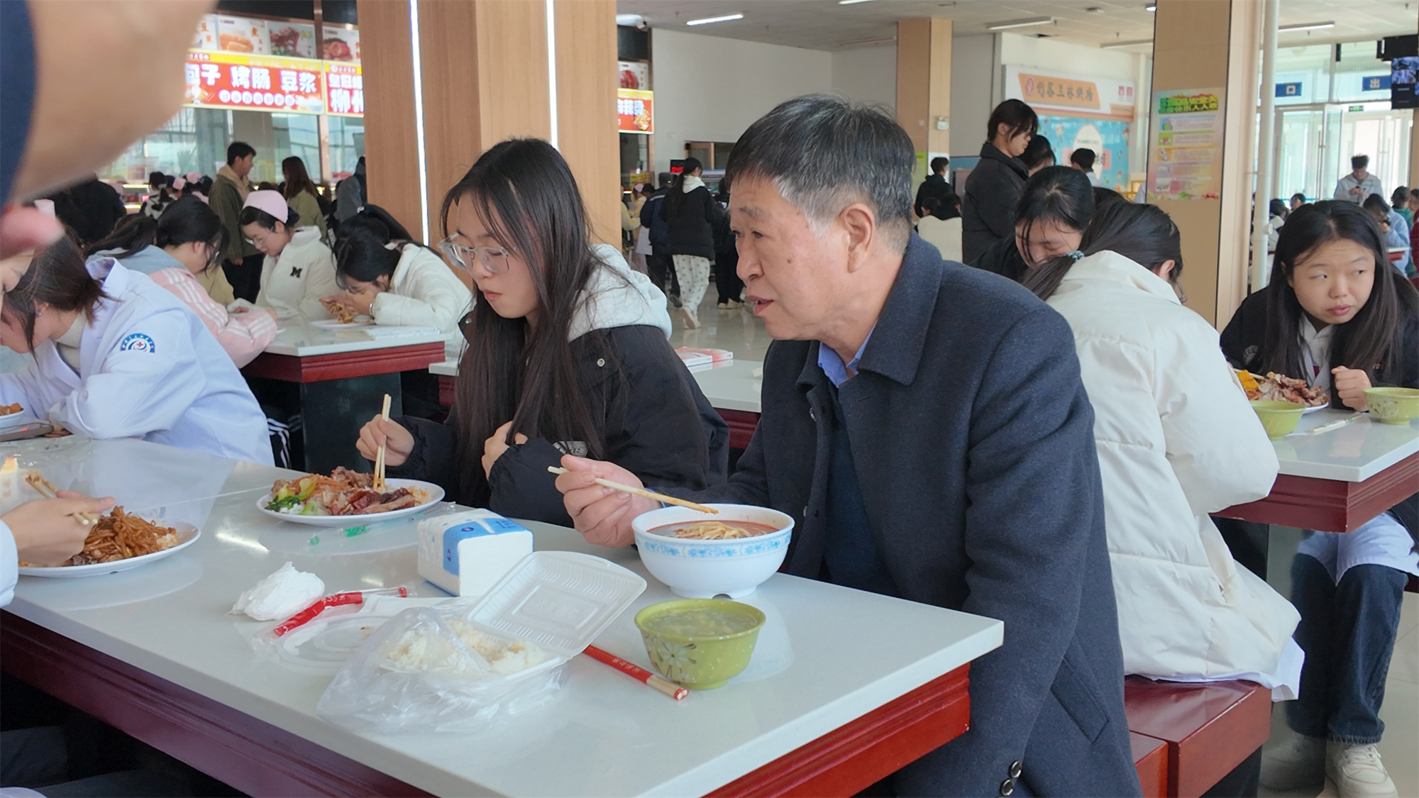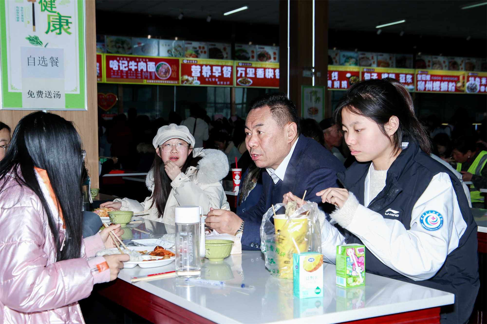其他校领导也在陪餐时间与学生亲切交流,并就进一步改进餐饮质量、维护食品安全提出意见和建议。