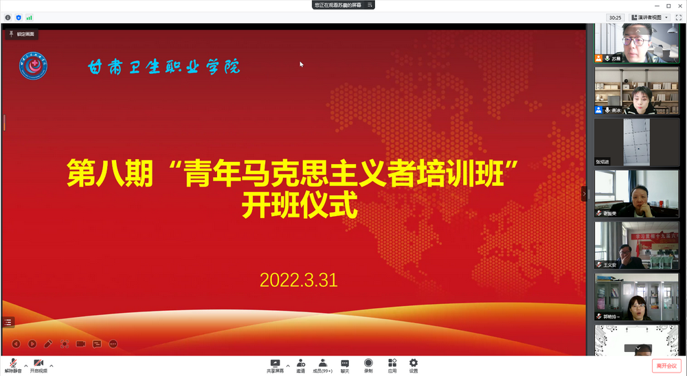 3月31日下午,我校第八期“青年马克思主义者培训班”开班仪式在线上顺利举行。校团委、学生工作部、临床护理学院、中医药学院、医学技术学院等部门负责人及团学指导老师、团学干部代表,第八期“青马班”参训学员等共计300余人参加了本次开班仪式。