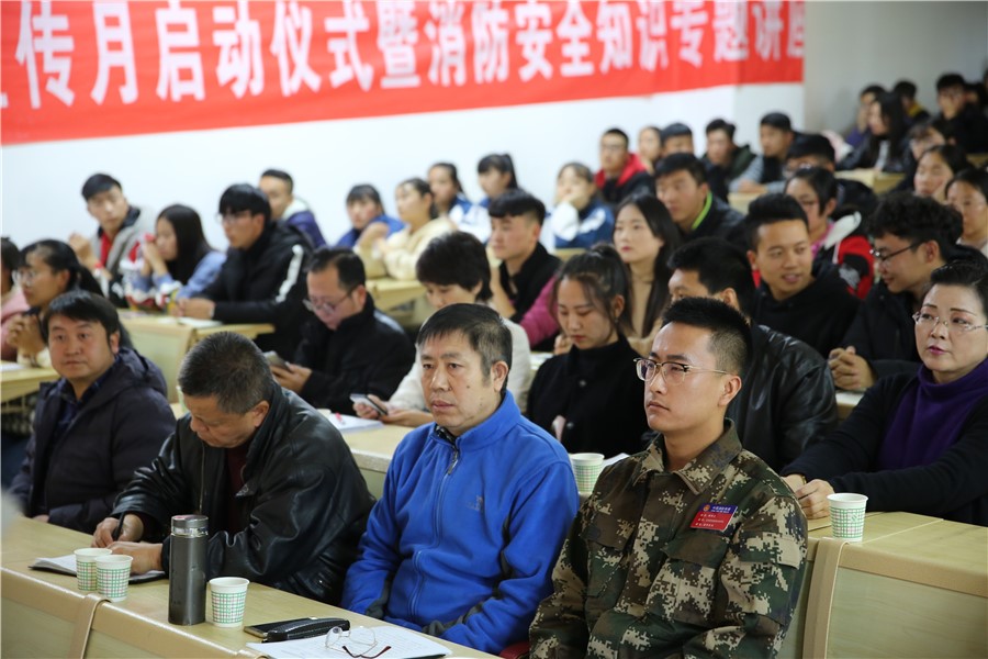 时值冬日,风干物燥,正是火灾的多发季节。为了增强广大教职员工的消防安全防火意识,普及消防安全知识,增强应对突发事件的能力,有效消除校园火灾隐患,保护师生生命财产安全,构建平安校园,11月8日下午,世界杯在线信誉网址“119”消防安全宣传月系列活动启动仪式在学院2号教学楼阶梯教室举行。此次活动由保卫处方凌主持,李银刚副校长作了动员讲话,兰州新区消防支队防火处杨筠文工程师作了防火专题讲座。保卫处、学生处、部分武警官兵、2018级新生班主任、新生班委及宿舍管理员共200余人参加活动。