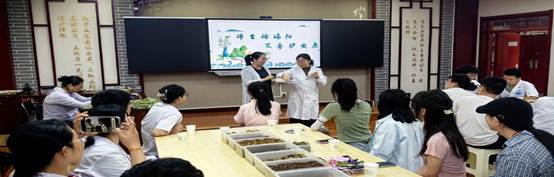 张亮老师为大家带来了承载着中医药文化的自制中药手串,这些手串不仅散发着淡雅的药香,还具有宁心安神、理气健脾、美容养颜等功效。学院精心准备了中药养生茶,大家在品尝养生茶的同时,了解养生茶的功效和适用人群,感受中医药在生活中的独特魅力。