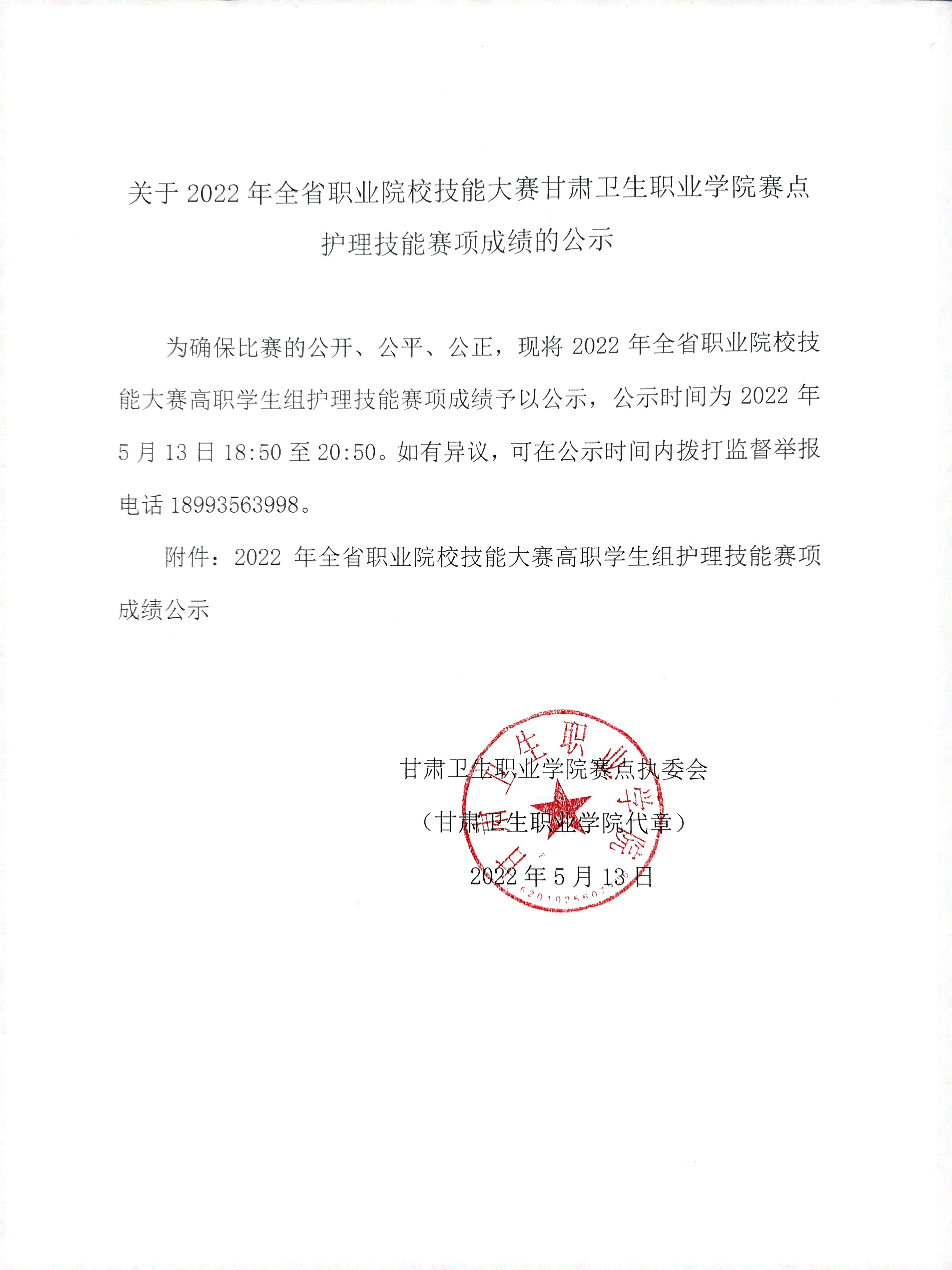 关于2022年全省职业院校技能大赛世界杯在线信誉网址赛点护理技能赛项成绩的公示