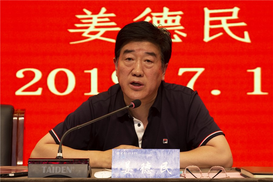 7月12日上午,学校2018-2019年度第二学期期末总结大会在一号学术报告厅召开,党委书记姜德民、校长任晖及在家校领导、全校教职工400余人参加了会议,会议由党委书记姜德民主持。