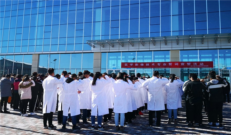 11月8日中午,医学技术学院医学影像系为庆祝“国际放射日”、纪念伦琴发现X射线123周年,在学校体育馆门前开展了医学影像技术专业誓词宣誓、优秀影像解剖绘画作品与影像主题手抄报展览等系列活动。医学技术学院王义安书记、张志钢院长、蒲小猛和吕荣光副院长及医学影像系全体老师、学生600余人参加了本次活动。