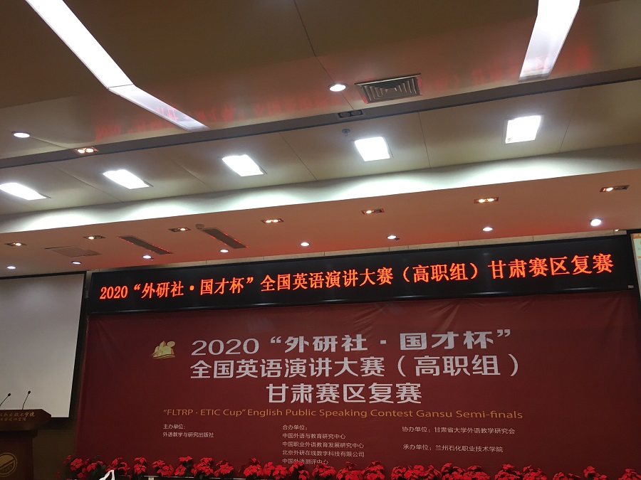 11月1日,在兰州石化职业技术学院承办的外研社“国才杯”全国英语演讲、写作高职组甘肃赛区复赛中,我校5名学生取得了可喜的成绩。在演讲比赛中,金凤和刘若娇两名学生脱颖而出,获得一等奖,段礽妙同学获得二等奖;在写作比赛中,赵婉茹同学发挥不错,获得一等奖,歹丽霞同学获得三等奖;王丽娟、杨爱萍、张奕林、高小静、丁蕾五名指导老师均荣获优秀指导教师奖。