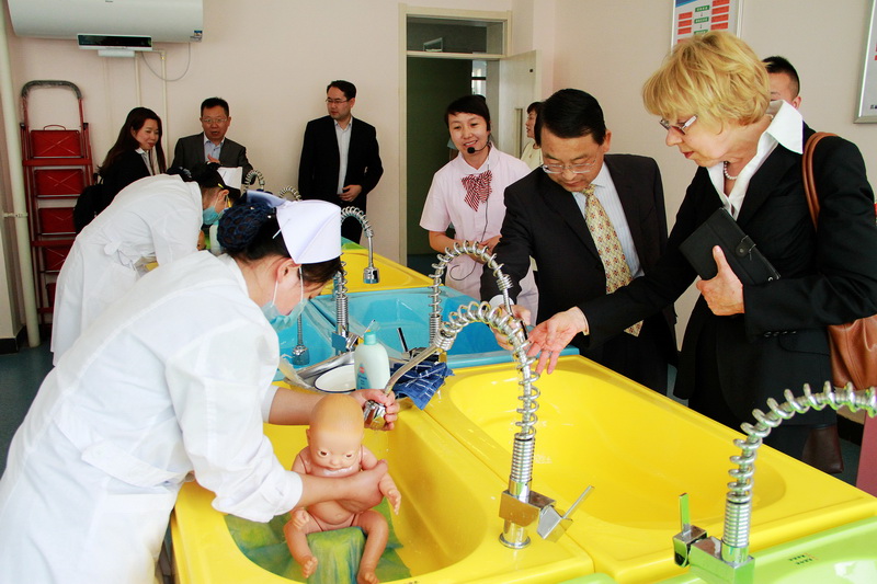 为增强人才培养的针对性和适应性、夯实学生的岗位职业能力、缩短成长周期,使学院培养目标和行业需求对接、教学与临床真正接轨,我院以职场环境为标准,建设了国内先进、西北一流的数字化高仿真的临床实训中心,面积26000m2,综合基础护理、内、外、妇、儿、院前后急救、重症监护等临床各科基本诊疗护理技能训练为一体,配置了一次能满足1000人次同时上课的高端专业实训设备。其中,妇、产、儿科相关技能实训区域面积5000m2,是训练助产专业学生专业技能、培养临床思维和综合素质的重要基地,为学生能力递进培养创造了系统、科学、校院贯通的保障条件。