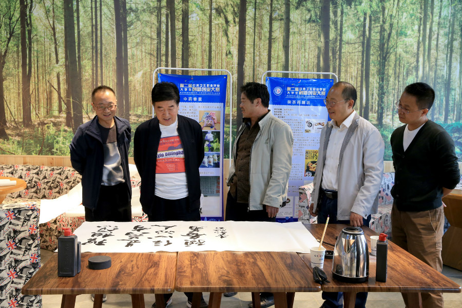 学校党委书记姜德民、副校长毕效武、王凤丽、高博等校领导亲临书画展,学校各处室(部门)、二级学院负责人和师生500余人观看了展览。学校党委书记姜德民同志对书画展给予了积极评价。高博副校长、赵建泽、顾强、李永启等老师在进行现场进行了创作,令在场学生受益匪浅。