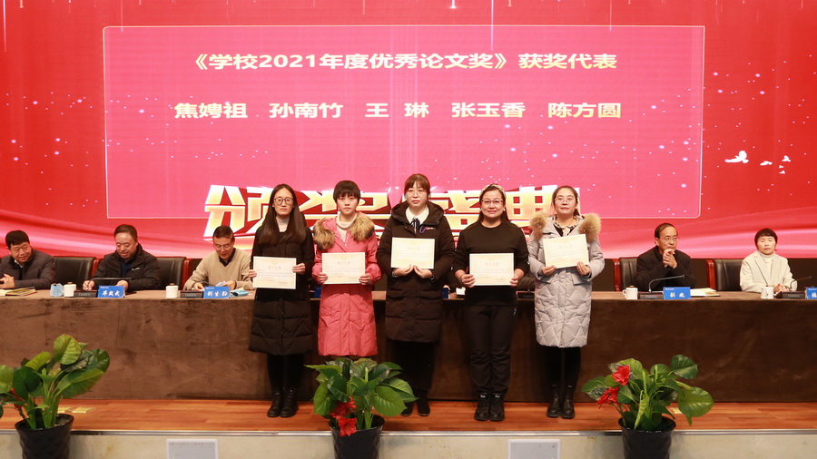 会上,对荣获全省标准化先进党支部的机关第四党支部、2021年学校教学能力比赛、“课程思政”课堂教学比赛暨2021年教学优秀奖评选以及2021年度优秀论文等获奖者进行了表彰,由学校领导为获奖代表颁发奖牌和荣誉证书。