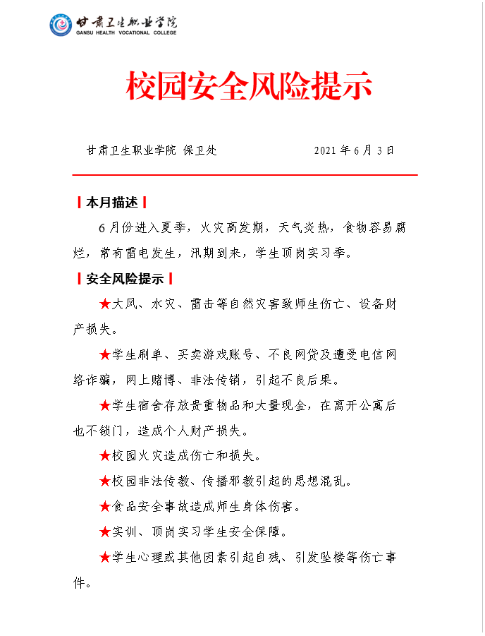 6月校园安全风险提示