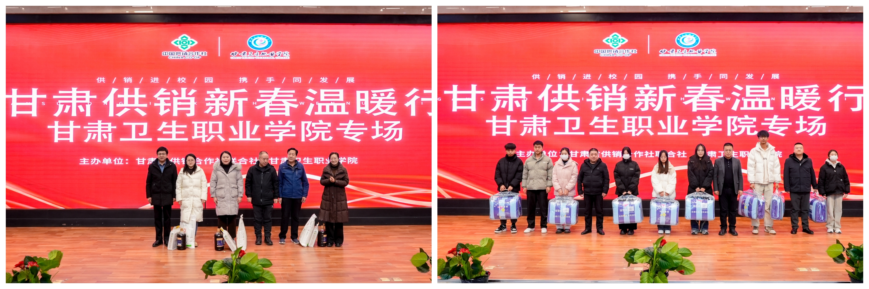 系列活动自元旦正式开启,内容丰富多样,包括甘肃供销联社“新春温暖行”高校专场活动、校领导带队走访慰问活动和集中发放春节慰问品活动等。随着春节的临近,1月26日,校长王建成代表学校领导班子赴退休教职工代表家中走访慰问、送上礼品,与退休教职工亲切交谈,介绍学校近年来的发展,感谢他们多年来为学校作出的贡献,为老同志们送上节日的祝福。其余校领导分别带队为困难教职工、困难学生、退休教职工、驻村帮扶工作队成员等送上关怀和温暖。截至目前,共为400余名师生员工送上了价值10万余元的慰问金和慰问品,切实将党和政府、上级工会组织以及学校的温暖和关怀送到师生身边。