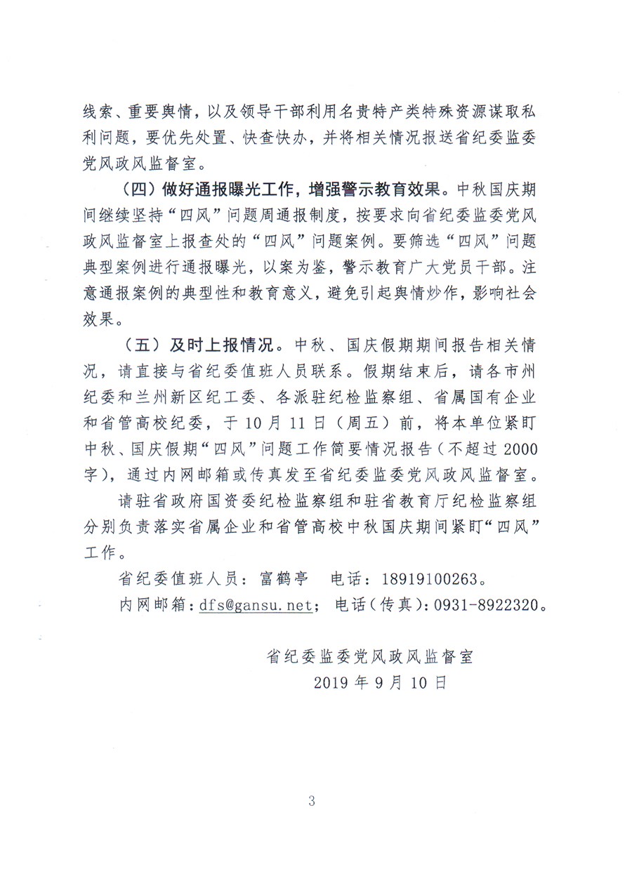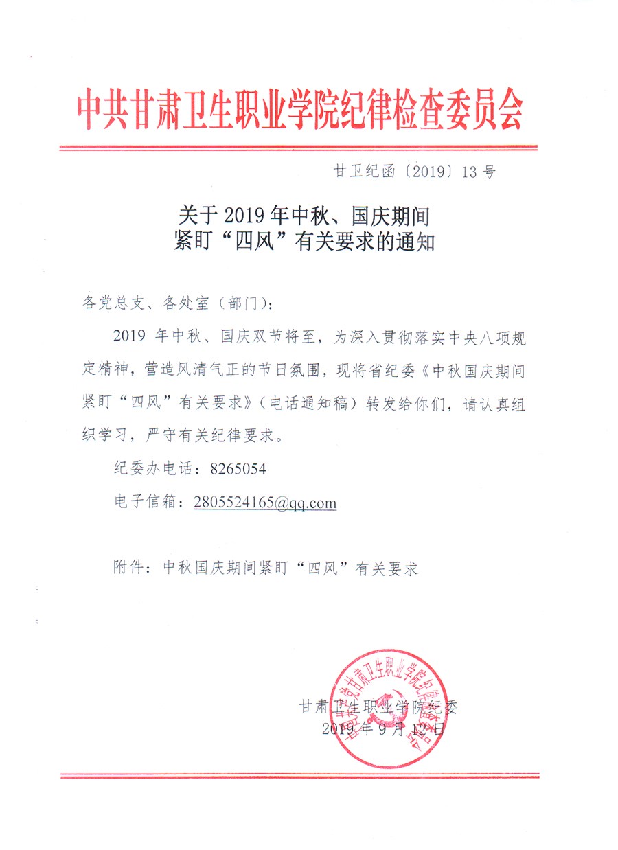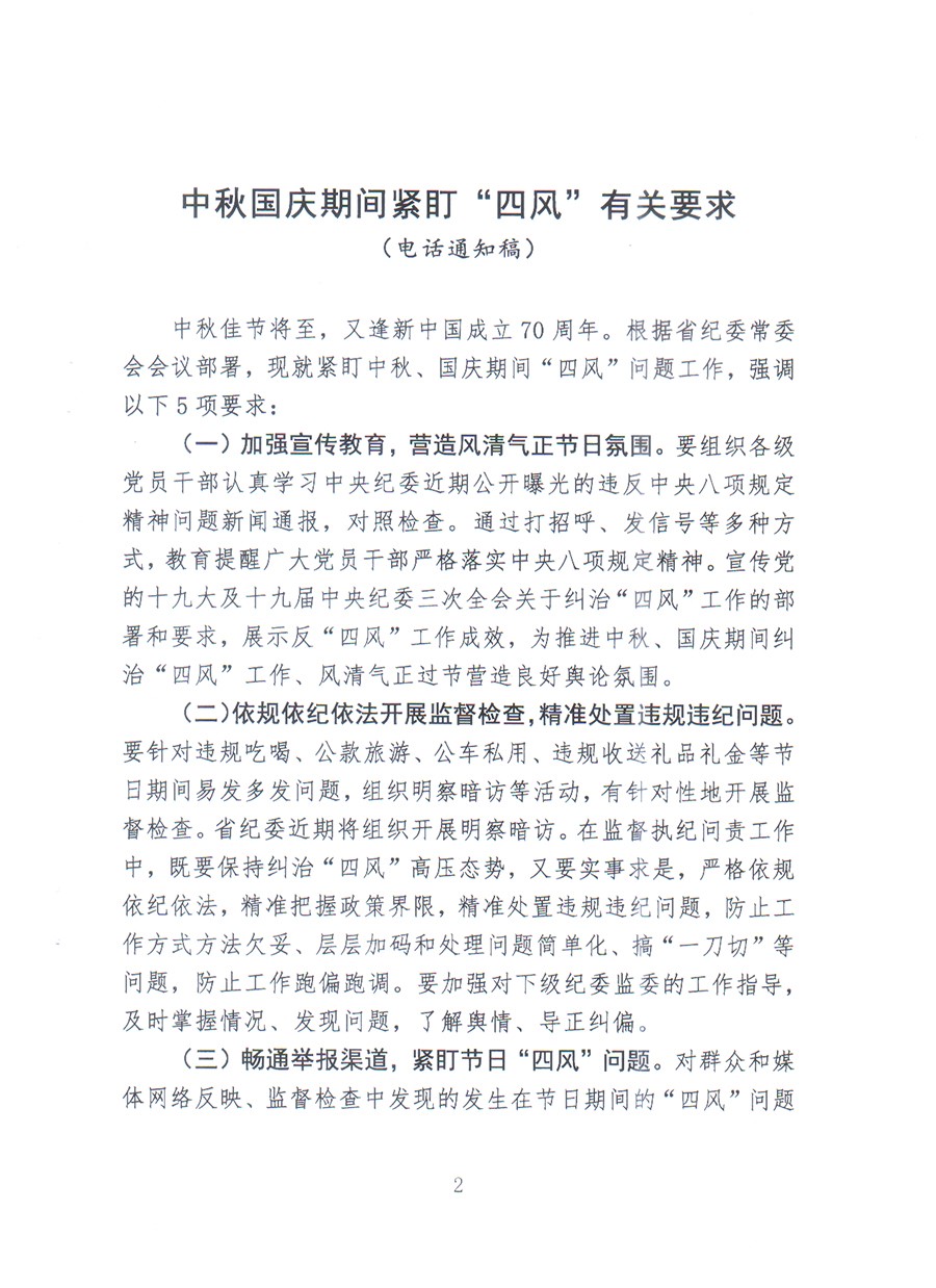 关于2019年中秋、国庆期间紧盯“四风”有关要求的通知