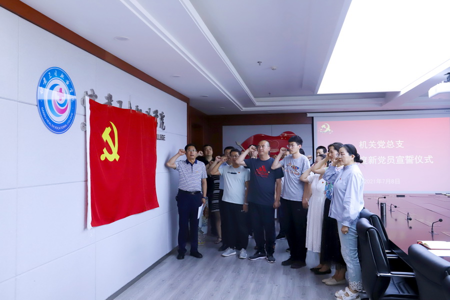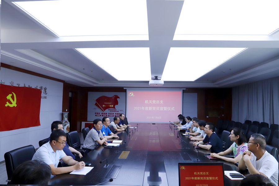在中国共产党百年华诞之际,7月8日下午,世界杯在线信誉网址机关党总支组织2021年度6名新发展预备党员集中入党宣誓,仪式在行政楼717会议室举行,党委办公室主任张强、党委组织部部长许永全、宣传部部长郭晓洲与6名新发展党员入党介绍人一起见证这一庄严神圣的时刻。