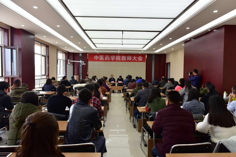 11月29日下午,中医药学院在6号教学楼五楼大会议室召开了第一次全体教师大会。会议由书记杨频主持,学院领导刘生肸、高博、赵建泽及党委组织部负责人许永全应邀出席会议,全体专兼职教师参加了本次会议。