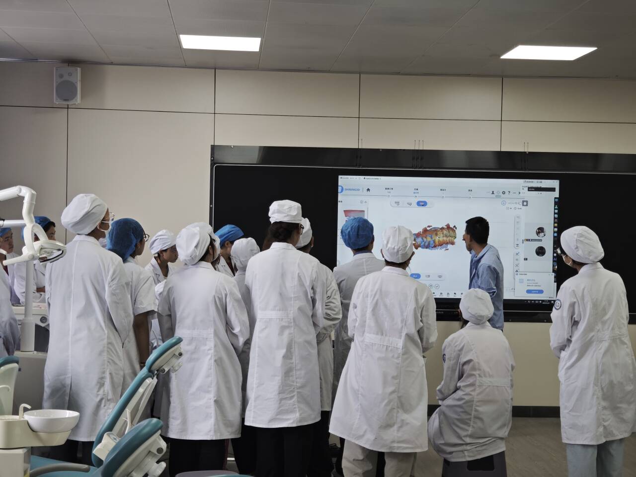为深入贯彻教育部就业能力提升“双千计划”,深化产教融合协同育人机制,5月24日,世界杯网络平台口腔医学院在7C207数字化实训中心成功举办《口腔椅旁数字化修复技术》微专业课程。本次课程特别邀请兰州群益义齿有限公司技术总监、高级技师崔继强担任行业导师,通过“理论+实操+案例”三维教学模式,为口腔医学及口腔医学技术专业学生开启数字化技术进阶之旅。