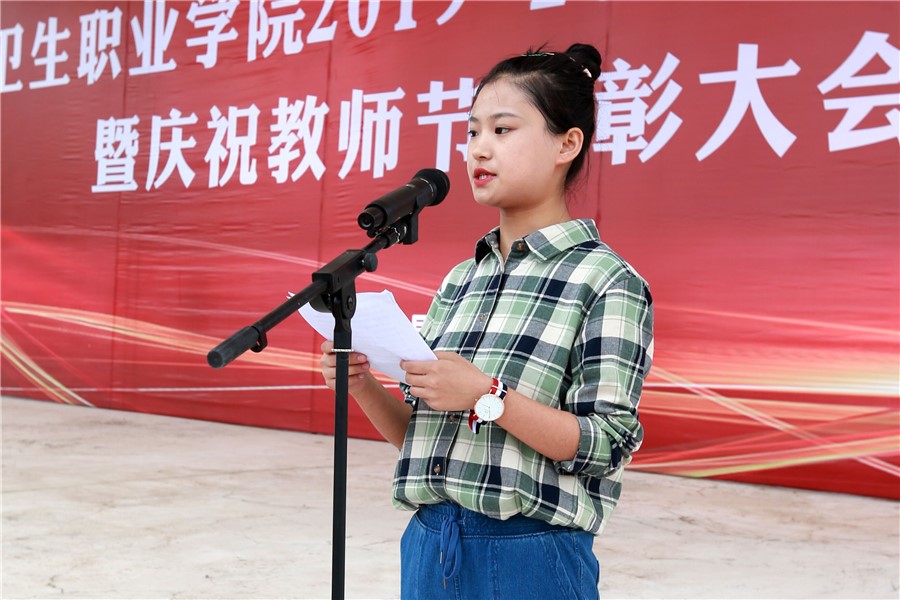 医学技术学院张春雨老师、2019级护理三年制58班石奇羽分别作为优秀教师代表和新生代表作大会发言,并献上了对全校师生的美好祝愿。