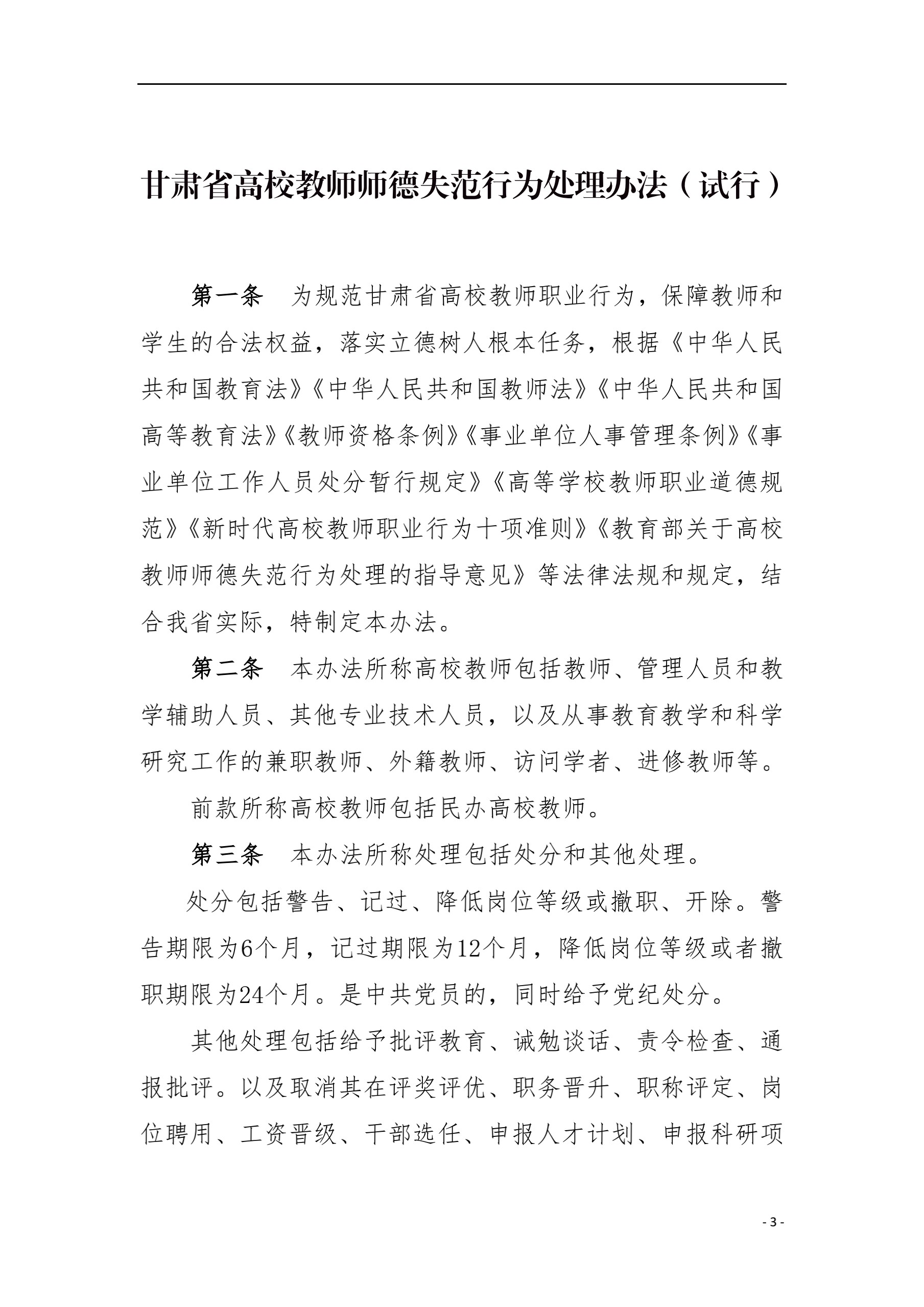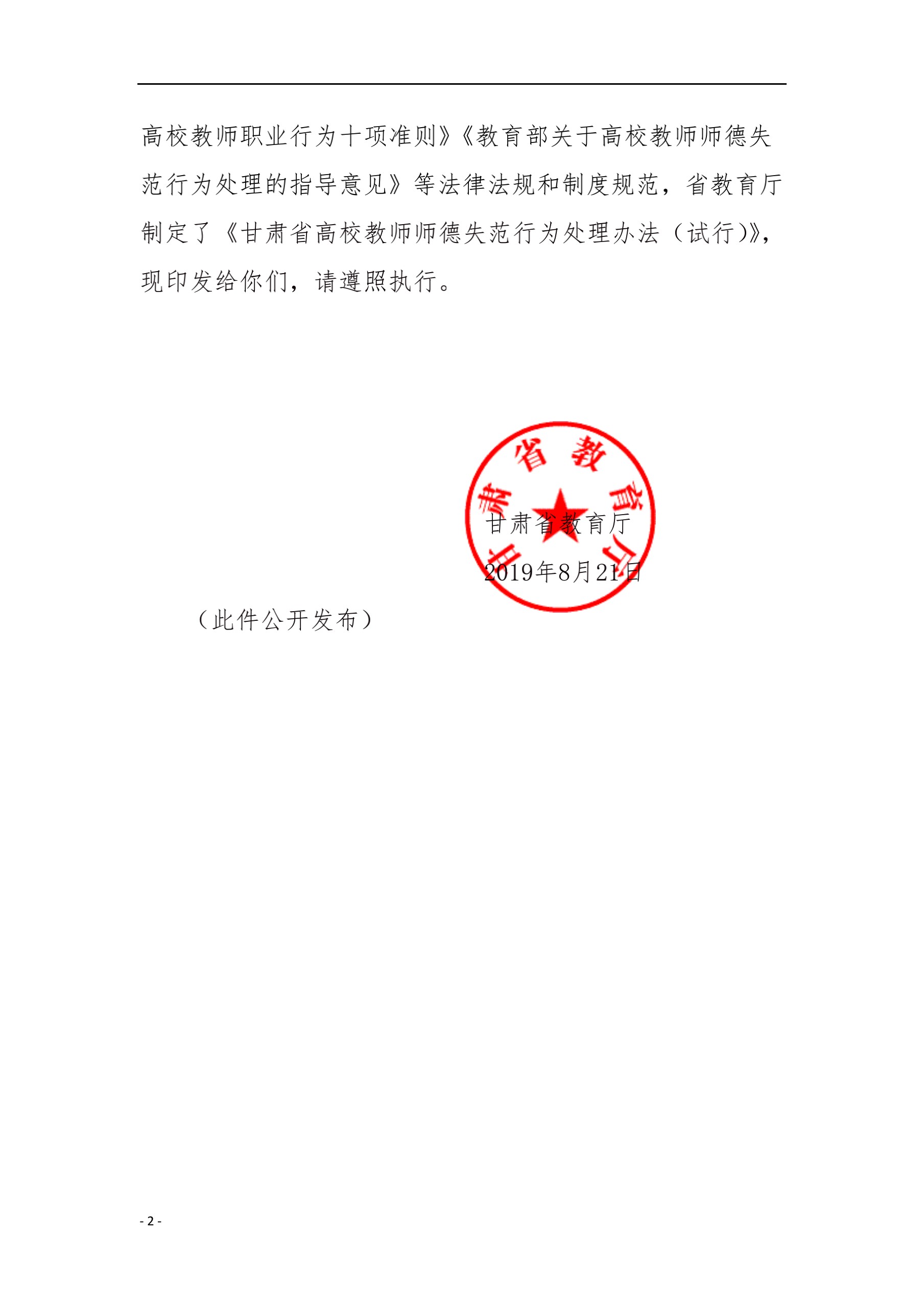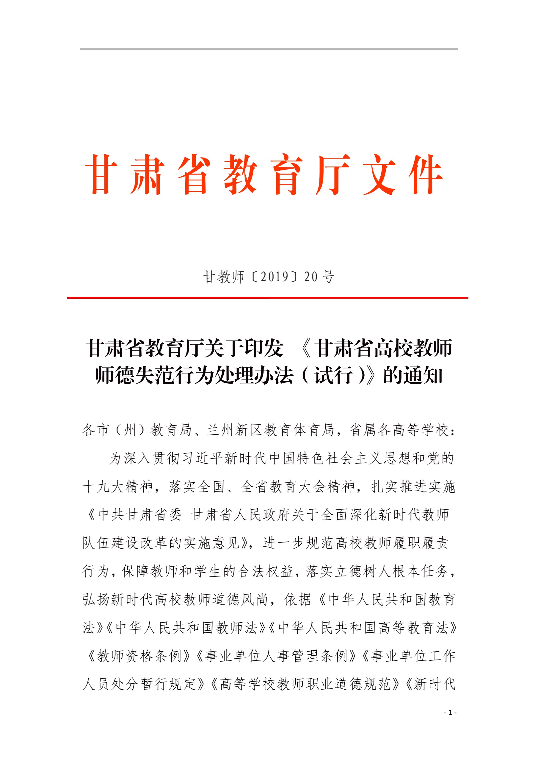 甘肃省教育厅关于印发 《甘肃省高校教师师德失范行为处理办法(试行)》的通知