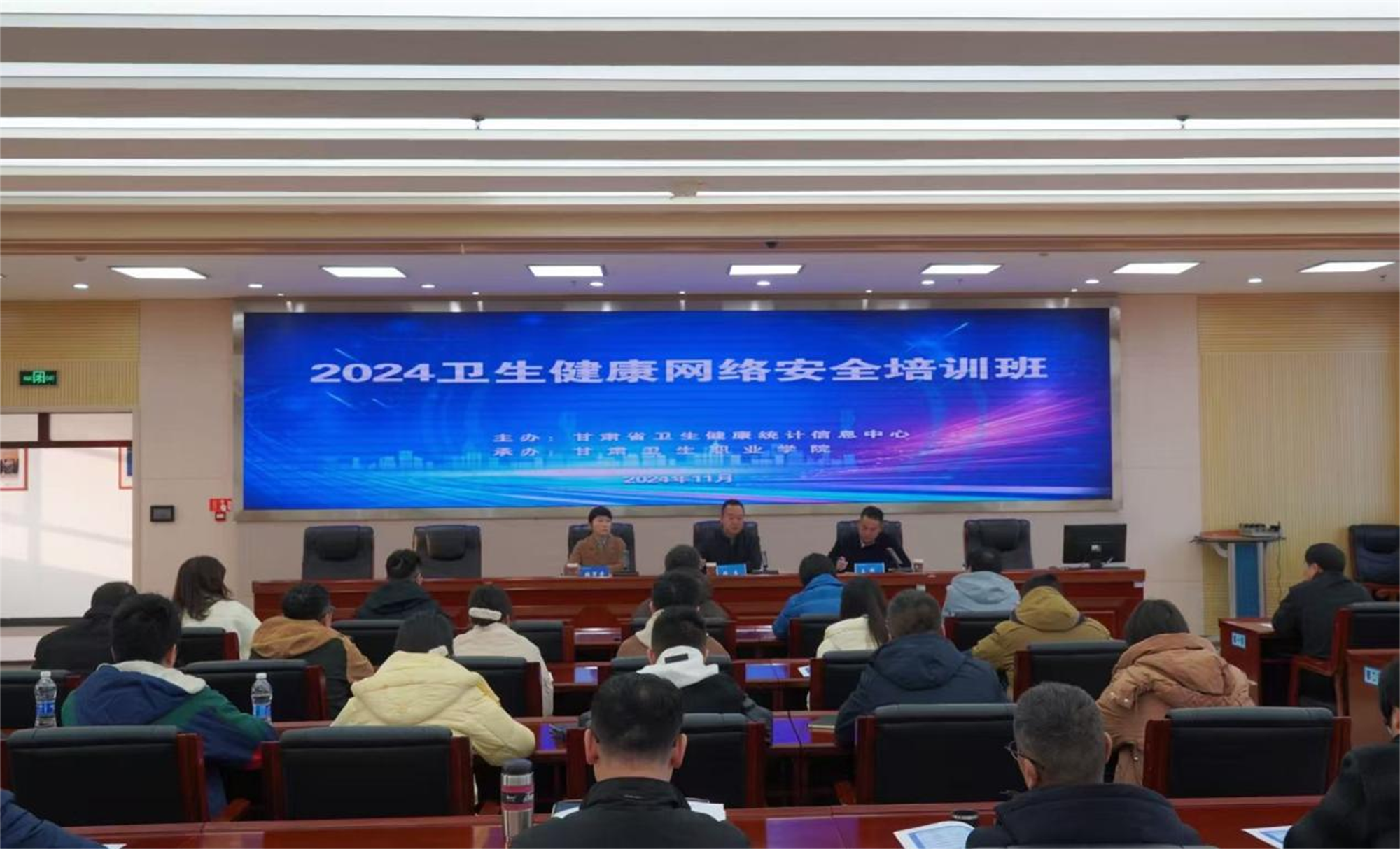 11月20日,由甘肃省卫生健康统计信息中心主办,我校承办的2024卫生健康系统网络安全培训班在行政楼八楼会议室顺利开班。我校党委委员、副校长张军荣,甘肃省卫生健康统计信息中心主任路杰,甘肃省卫生健康委规划信息处四级调研员王晖出席开班仪式,来自各市州的40余位卫生系统从事网络安全与信息化工作的学员参加培训。