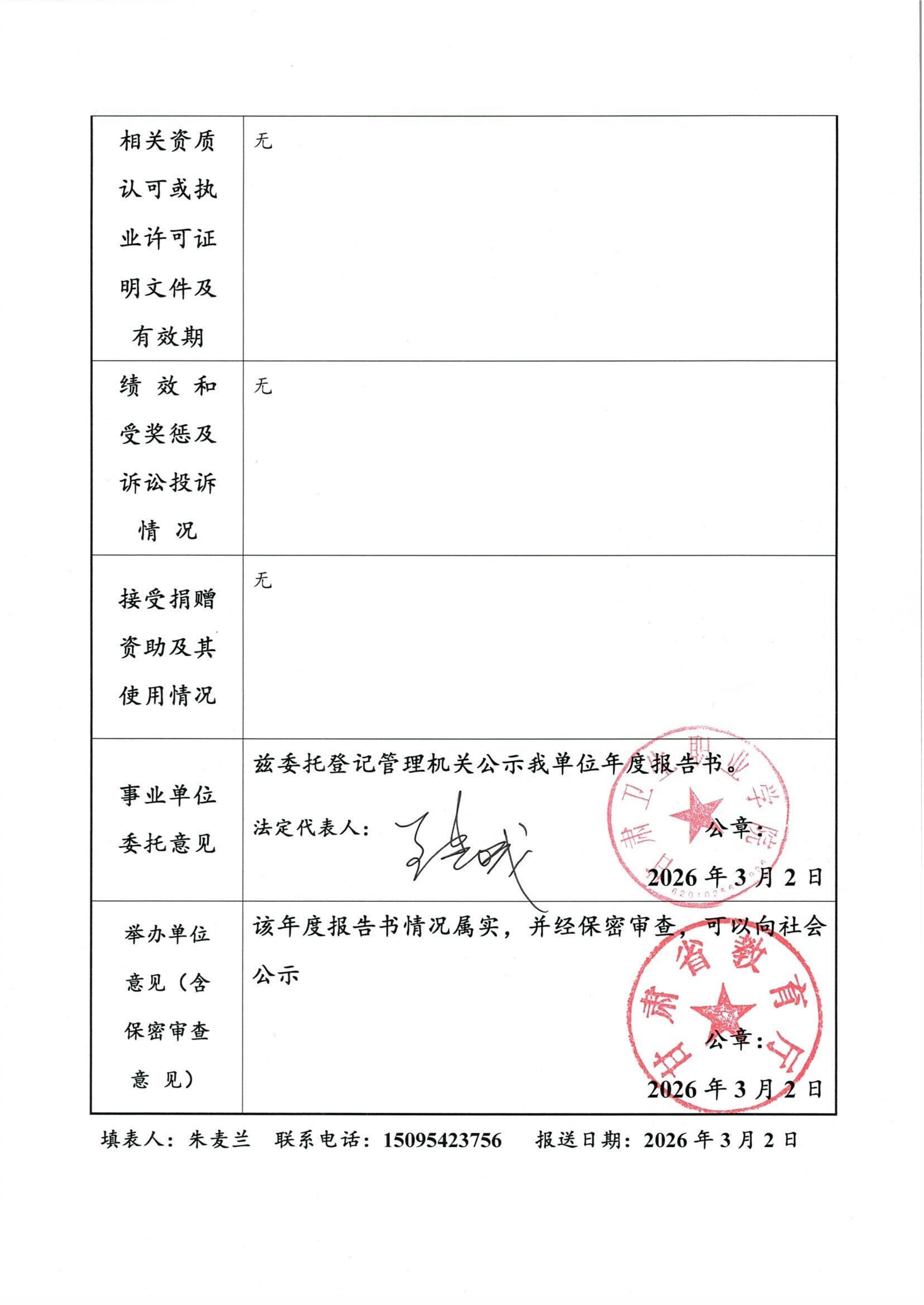 事业单位法人年度报告单