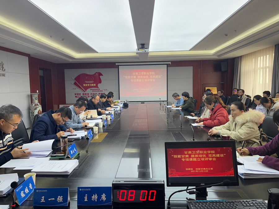 12月15日,科研处、技能甘肃办公室在办公楼717会议室组织召开技能甘肃、提质培优、“双高”建设专项课题立项评审会,校领导康逢民、张军荣等12位校内专家对申报32项课题进行现场答辩立项评审。评审会由科研处处长王一强主持,各项目负责人及课题组主要成员参加。