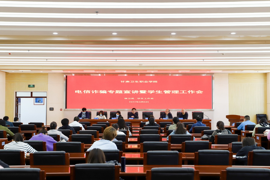 为落实好5·12“防灾减灾日”宣传教育主题活动及学生工作安排,2022年5月5日下午,学校特邀请兰州新区西岔派出所宣讲员雪明警官开展了校园欺凌和反电信诈骗主题宣讲,活动由学生工作处张绍进处长主持,邱文云副校长、各二级学院书记、保卫处杜学海处长、各二级学院近百名辅导员(班主任)参加了本次会议。