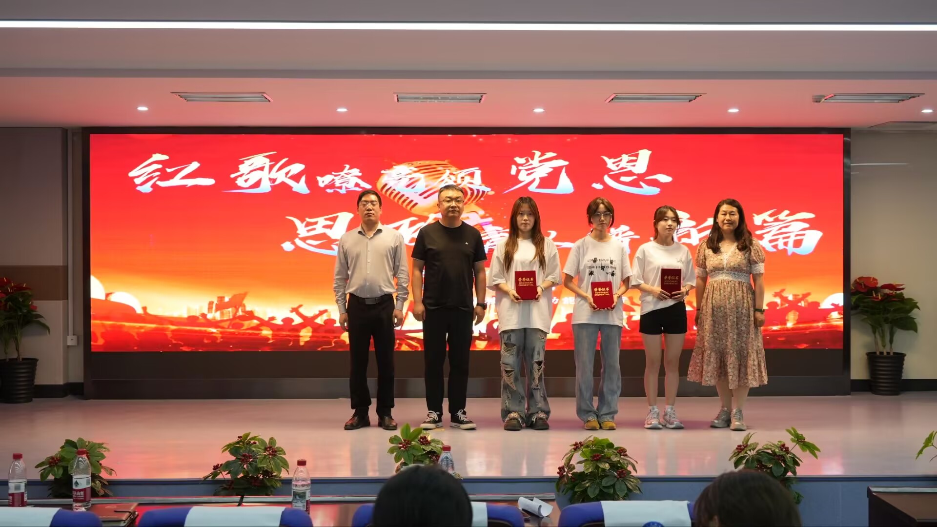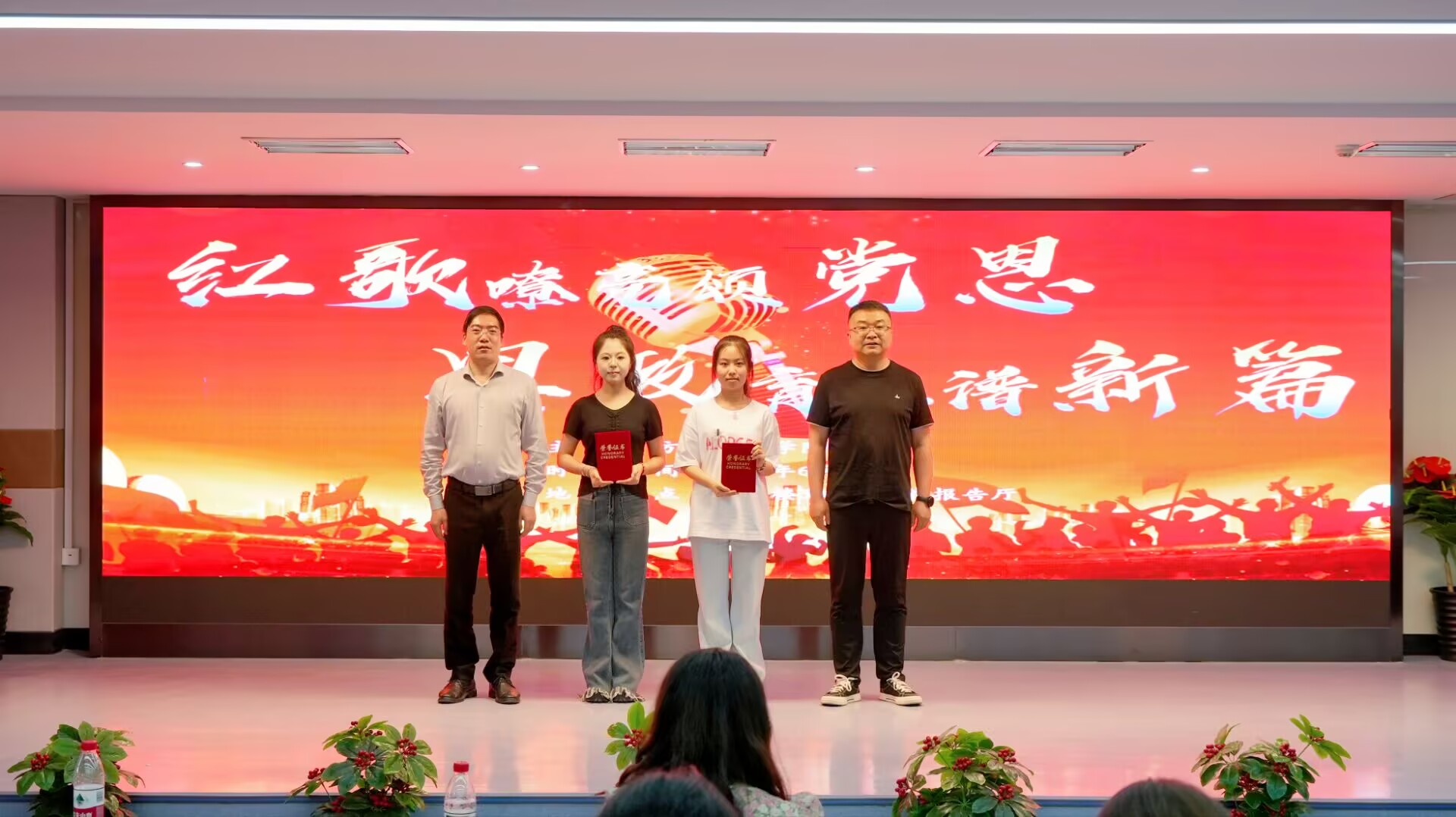 经过激烈比拼,最终 2 个班级荣获一等奖,3 个班级荣获二等奖,5 个班级荣获三等奖。最后,马彦军进行总结发言,他对各参赛班级的精彩表现给予充分肯定,强调合唱活动对提升学生艺术素养、增强团队凝聚力的重要意义,并鼓励同学们继续积极参与此类艺术活动,从红歌中汲取丰富的政治营养,促进个人全面发展。