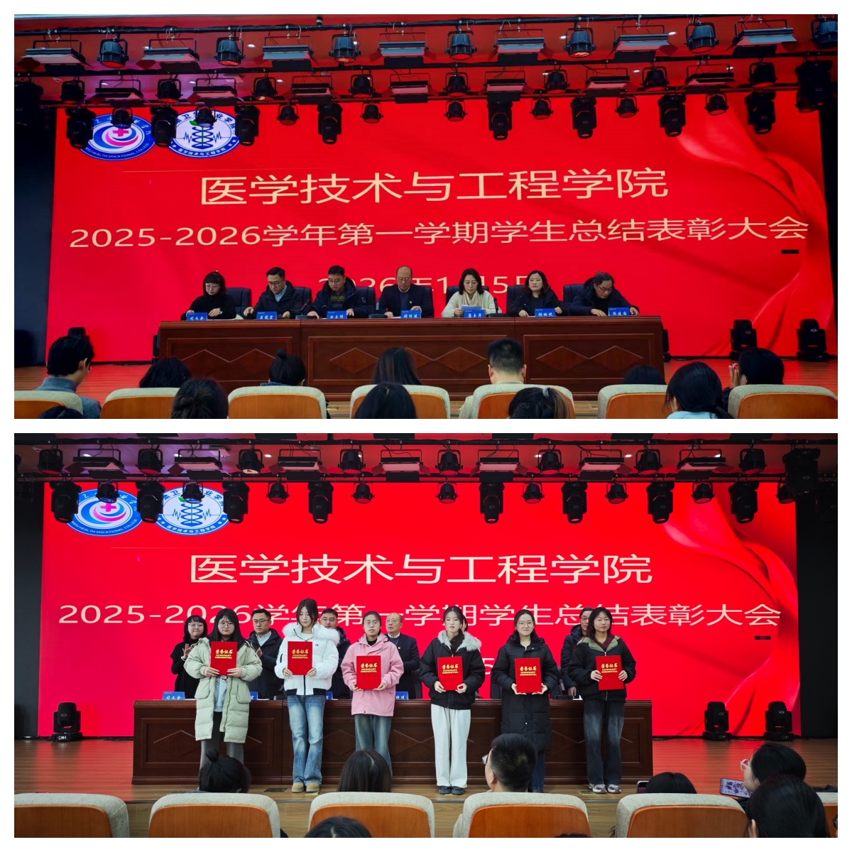 会议在雄壮的国歌声中拉开序幕。会上宣布了学院2023-2024学年国家奖学金、国家励志奖学金获奖学生名单、学校优秀班干部、三好学生表彰文件、校团委 “两优一先”表彰文件、2025年学院文明宿舍等学生活动获奖名单,并由学院领导向获奖学生代表颁奖。
