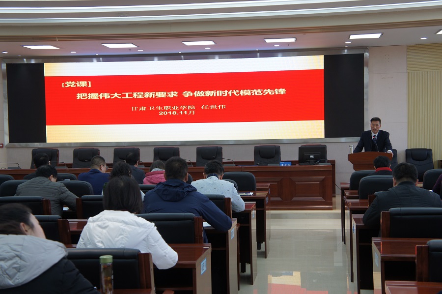 为深入学习贯彻习近平新时代中国特色社会主义思想,认真落实教育厅高校工委关于“领导干部带头讲党课”的要求,按照学校党委的统一部署,11月27日,副校长任世伟以《把握伟大工程新要求,争做新时代模范先锋》为题,为学校全体党员讲了专题党课。