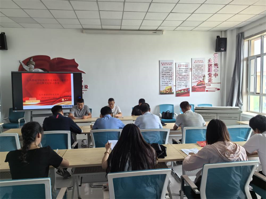 6月12日,为深入学习党的纪律,增强党性修养,进一步加强党的纪律建设,公共基础学院教师党支部组织开展党纪学习教育专题主题党日活动。本次专题学习采取线上线下相结合的方式开展,全体党员参加,学校纪委书记刘斌,党委委员、副校长邱文云以普通党员身份参加会议。