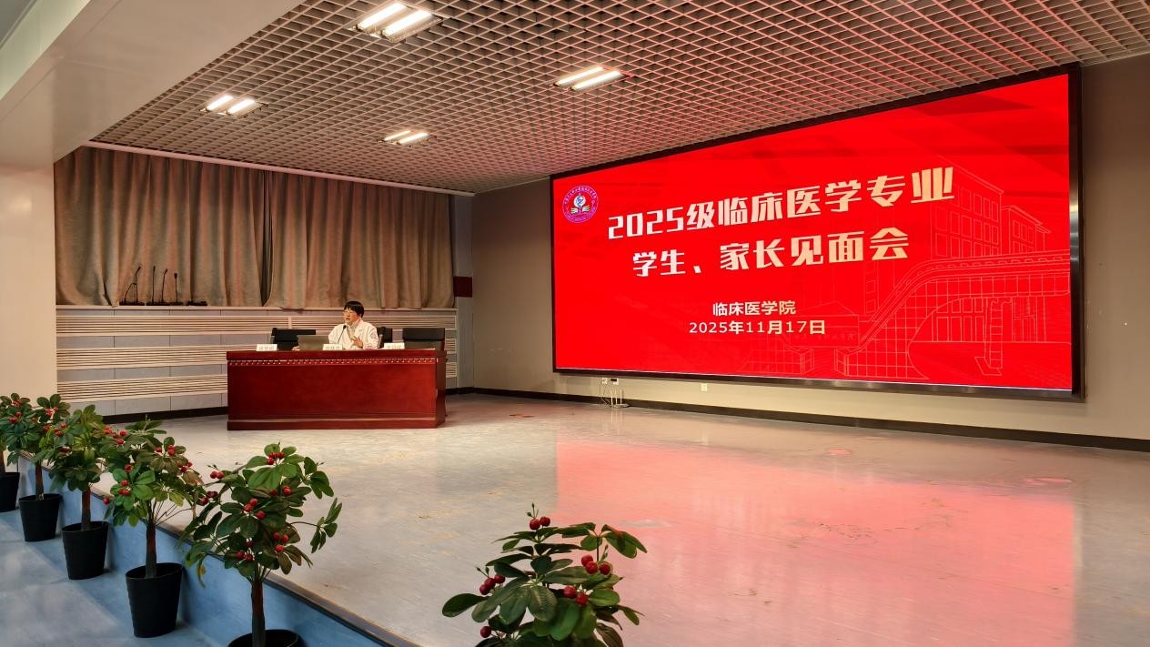 为进一步加强家校沟通,深化学生职业规划指导,11月17日,临床医学院组织召开2025级临床医学专业学生及家长见面会。会议采取“线上+线下”相结合的方式,围绕执业助理医师资格考试备考与就业发展等内容进行交流。