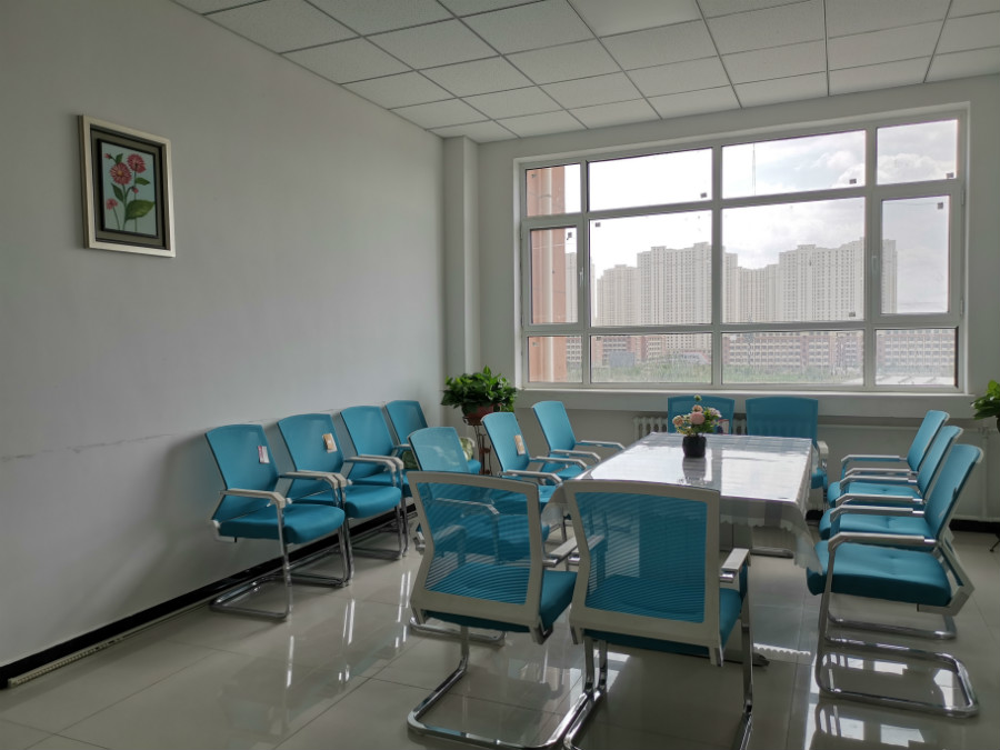 教师休息室分别设在1号教学楼209、409,2号教学楼209、409、607,3号教学楼209、409、609、809,4号教学楼309,7号教学楼B栋310及C栋405。所有休息室全部进行了室内吊顶,并配备了阅览桌椅、指纹储物柜、穿衣镜、装饰画、绿萝、衣架、假花、窗帘、暖壶及卫生工具等物品,极大地提升了空间的多重利用率,将原先仅能供教师临时休息的休息室改造为兼具研讨、备课、休息于一体的研讨室、阅览室、休息室。