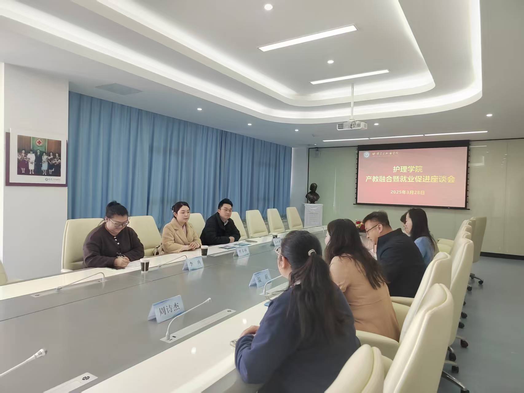 此次会议聚焦产教融合、实习与就业三大核心议题,为医院充分了解学生的专业素养和综合能力奠定了基础,学院也会精准把握用人单位需求,为学生提供更多具有针对性的就业指导。护理学院将以此为契机,深化产教融合,积极推进实习就业,开启院校合作新篇章。