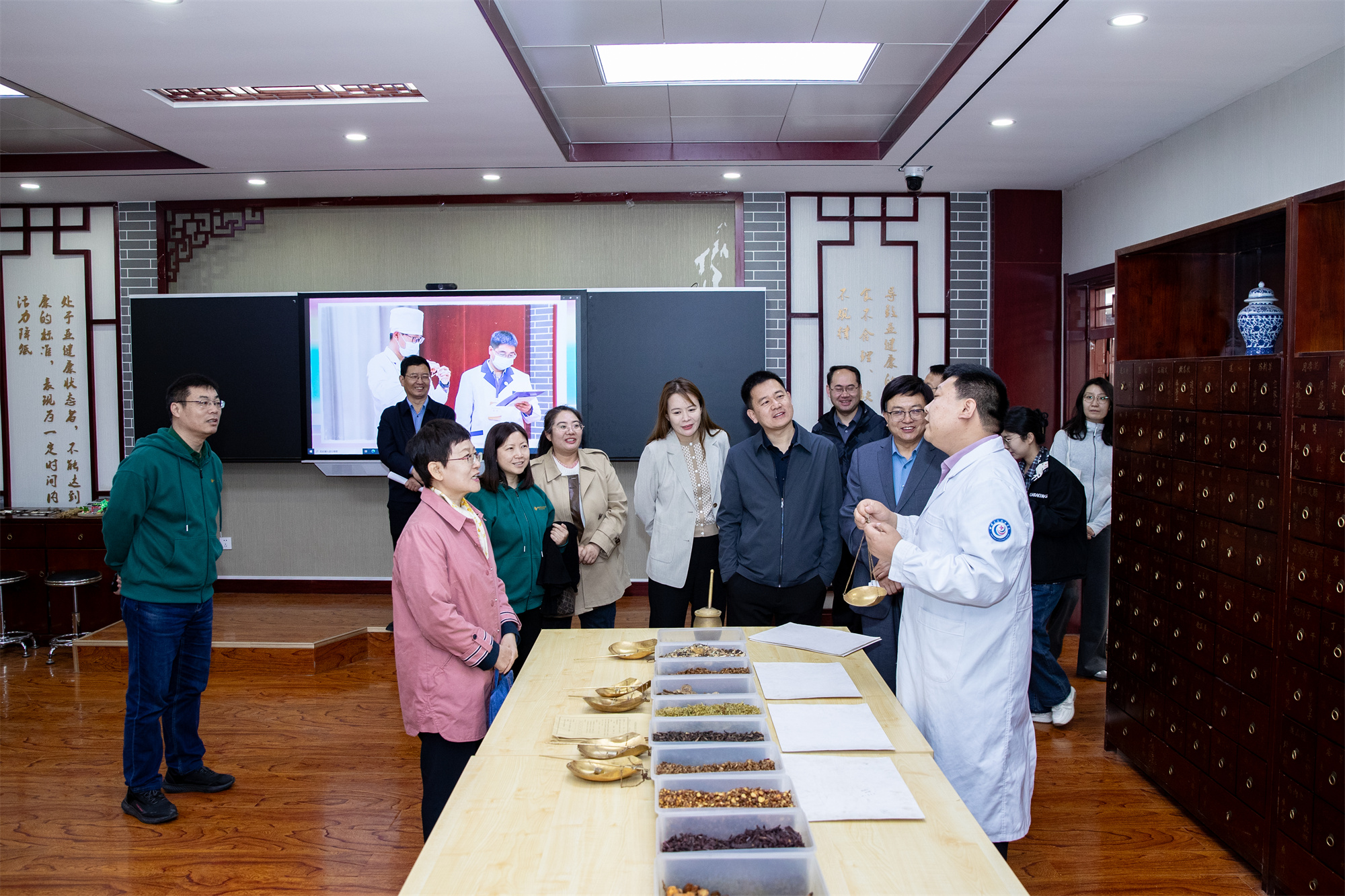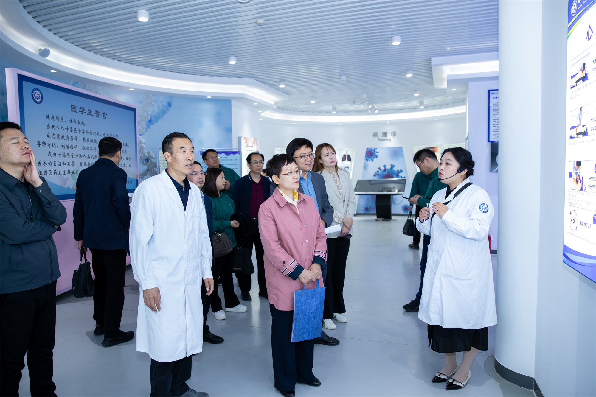 调研团一行参观了中医学院、药学院、临床医学院、生命科学馆,实地考察了学校实验实训教学环境,详细了解了学校的办学特色、人才培养、专业建设和服务经济社会发展等方面的情况。随后,双方围绕“专业群建设、产教融合、科教融汇”等主题开展座谈。