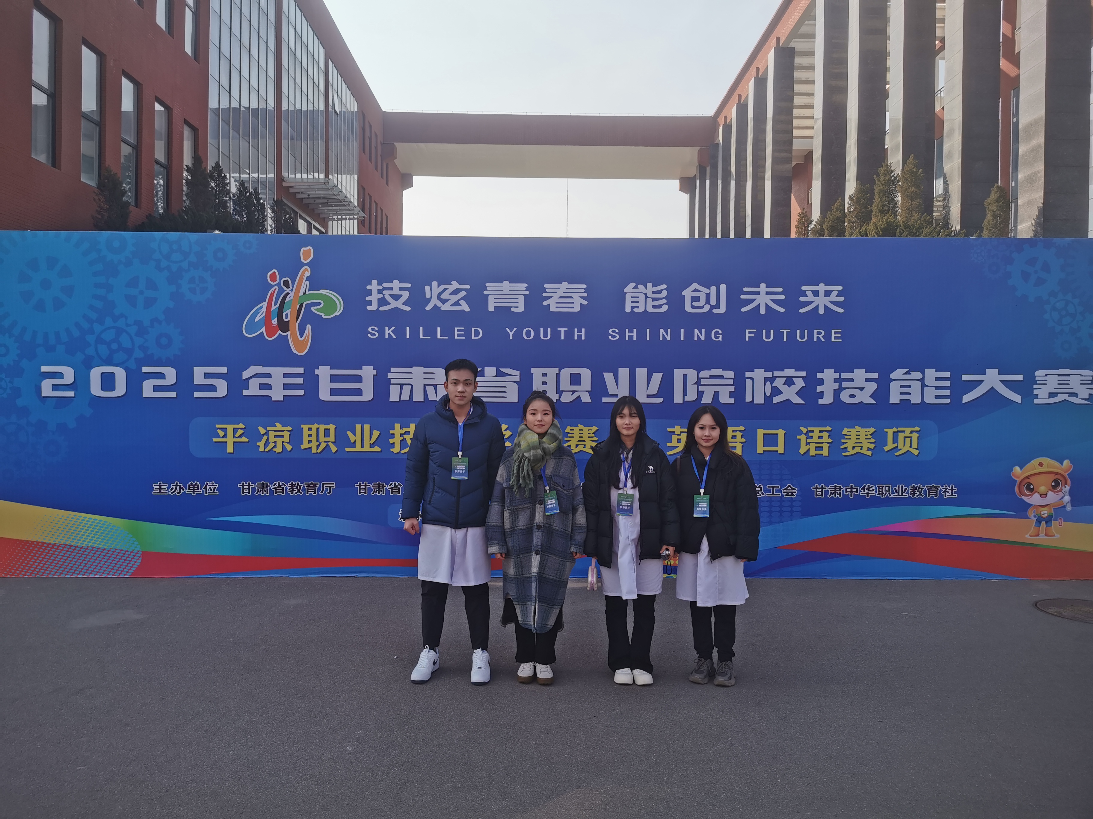 1月10日,2025年甘肃省职业院校技能大赛英语口语赛项在平凉职业技术学院赛点落下帷幕。来自全省19所职业院校的34支参赛队伍同台竞技、各展风采。我校钱磊、梁瑾老师团队以总分第二名的成绩获得金奖。