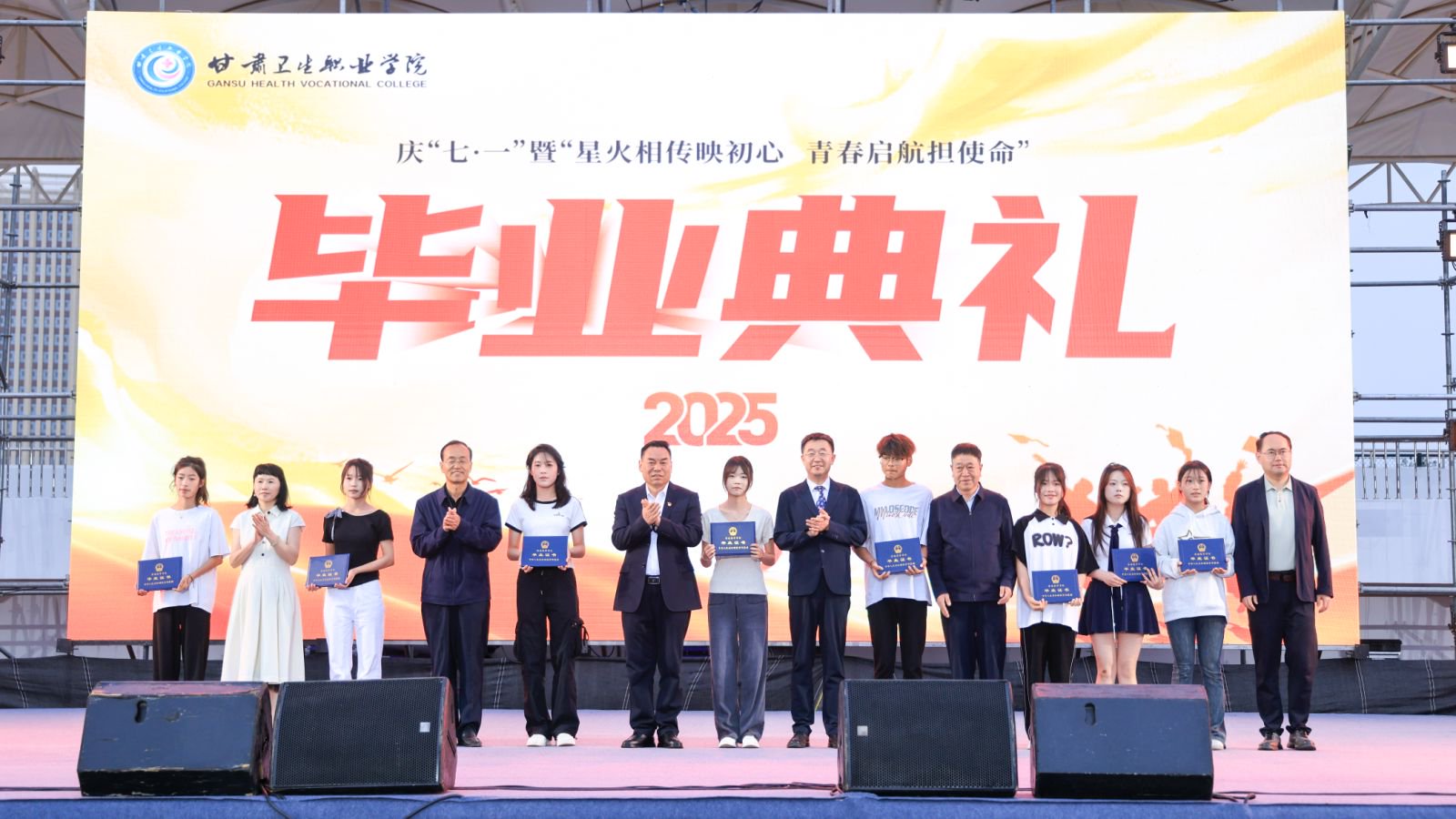 6月23日晚,世界杯网络平台2025届学生毕业典礼在云飞体育场举行。全体校领导,各处室、二级学院负责人,毕业班辅导员、任课教师,学校安保、后勤、物业、餐饮工作人员,毕业生家长代表、2025届毕业生和全体在校生参加典礼,兰州新区职教园区服务保障中心、兰州新区教育和卫生健康委员会、兰州新区第一人民医院、兰州新区企业服务中心、兰州市公安局兰州新区分局、兰州市特殊教育学校领导及人员应邀出席。活动由学校副校长杨频主持。