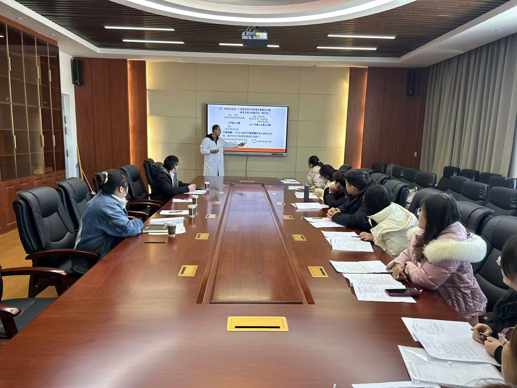 新入职教师常睿卿试讲《有机化学》课程,以醇类药物引入新课,重点讲解了醇的分类及命名。常睿卿老师结合多个生动案例和多媒体资源,对原本抽象的理论知识进行了深入浅出地讲解,表现出了扎实的专业知识和积极的教学态度。