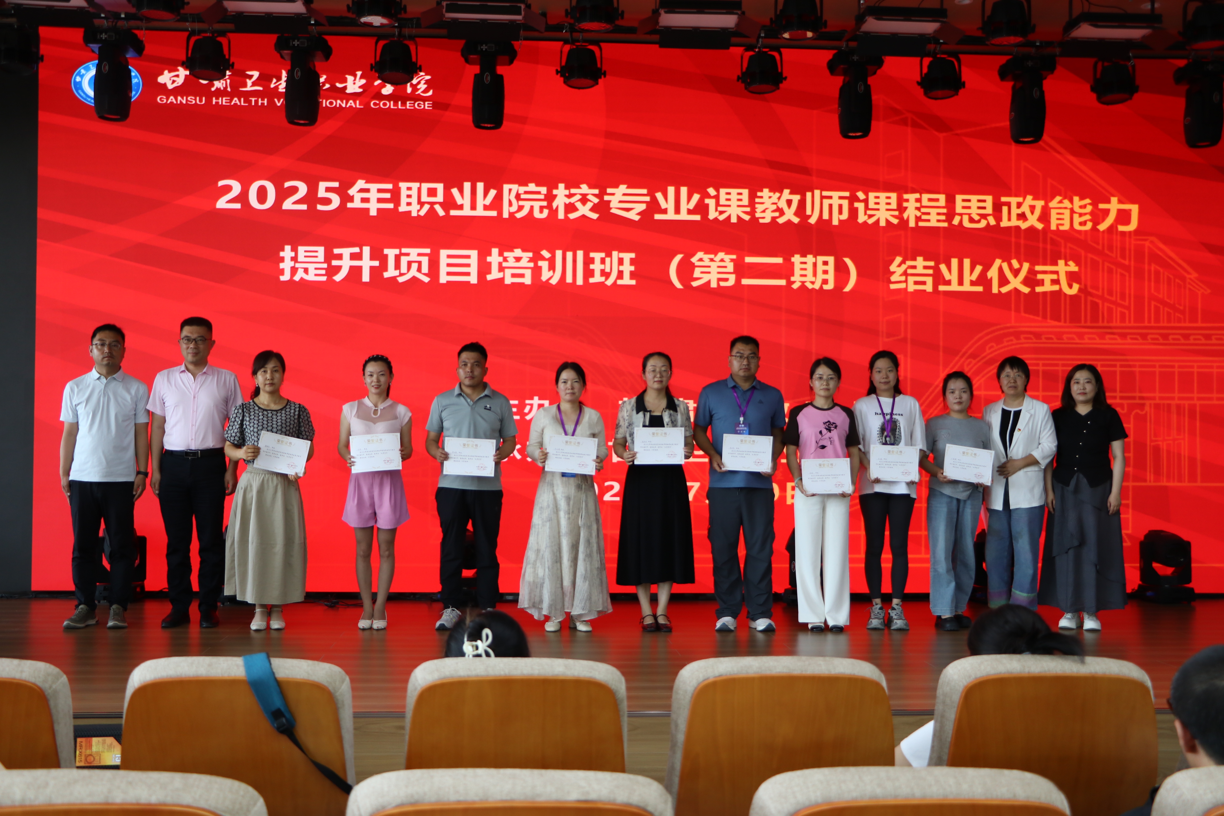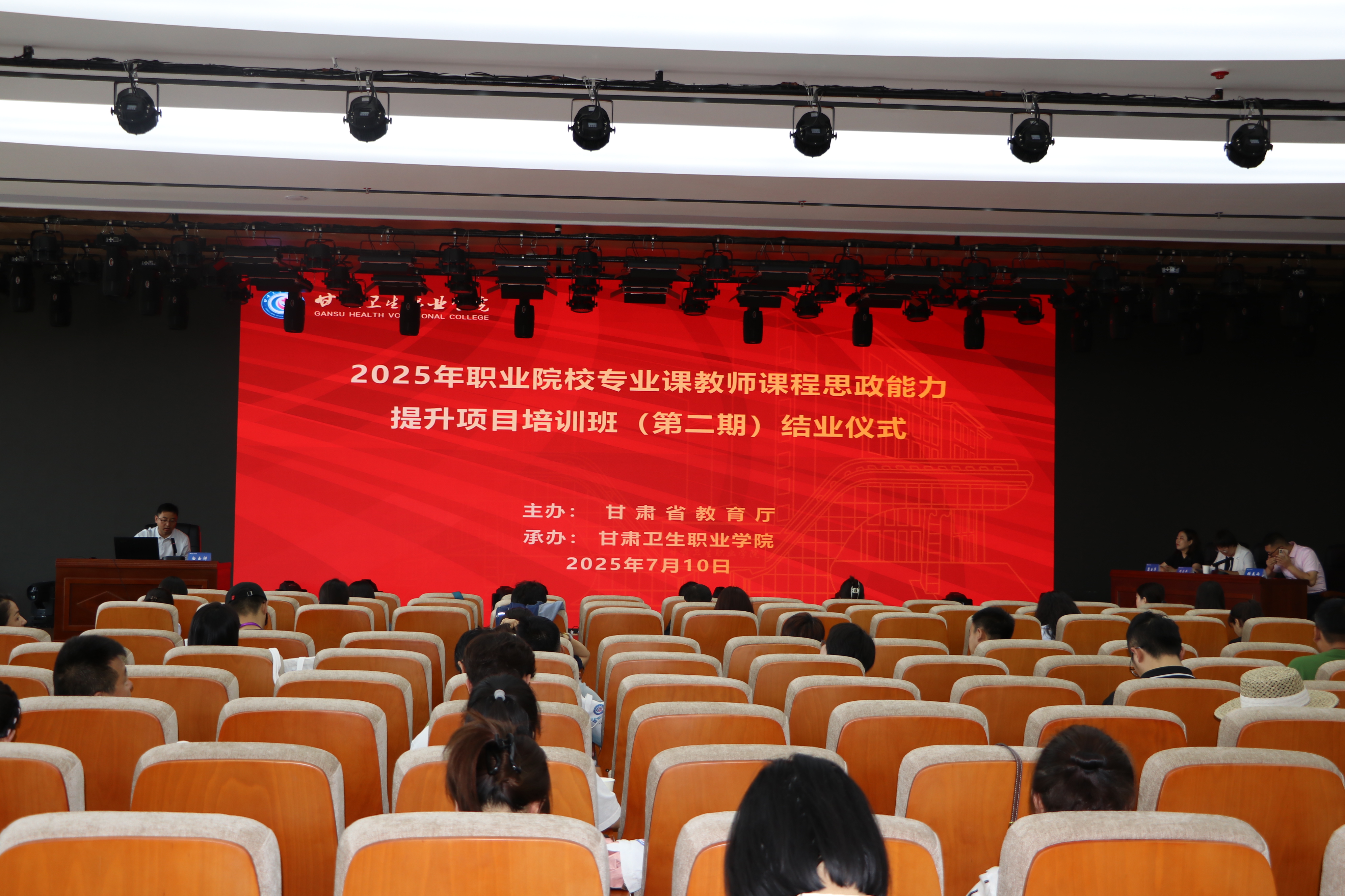 7月10日下午,由甘肃省教育厅主办、世界杯在线信誉网址承办的 2025年度甘肃省职业院校专业课教师课程思政能力提升项目培训班(第二期)顺利结班,来自全省50余所职业院校共100名教师参加了结业仪式。