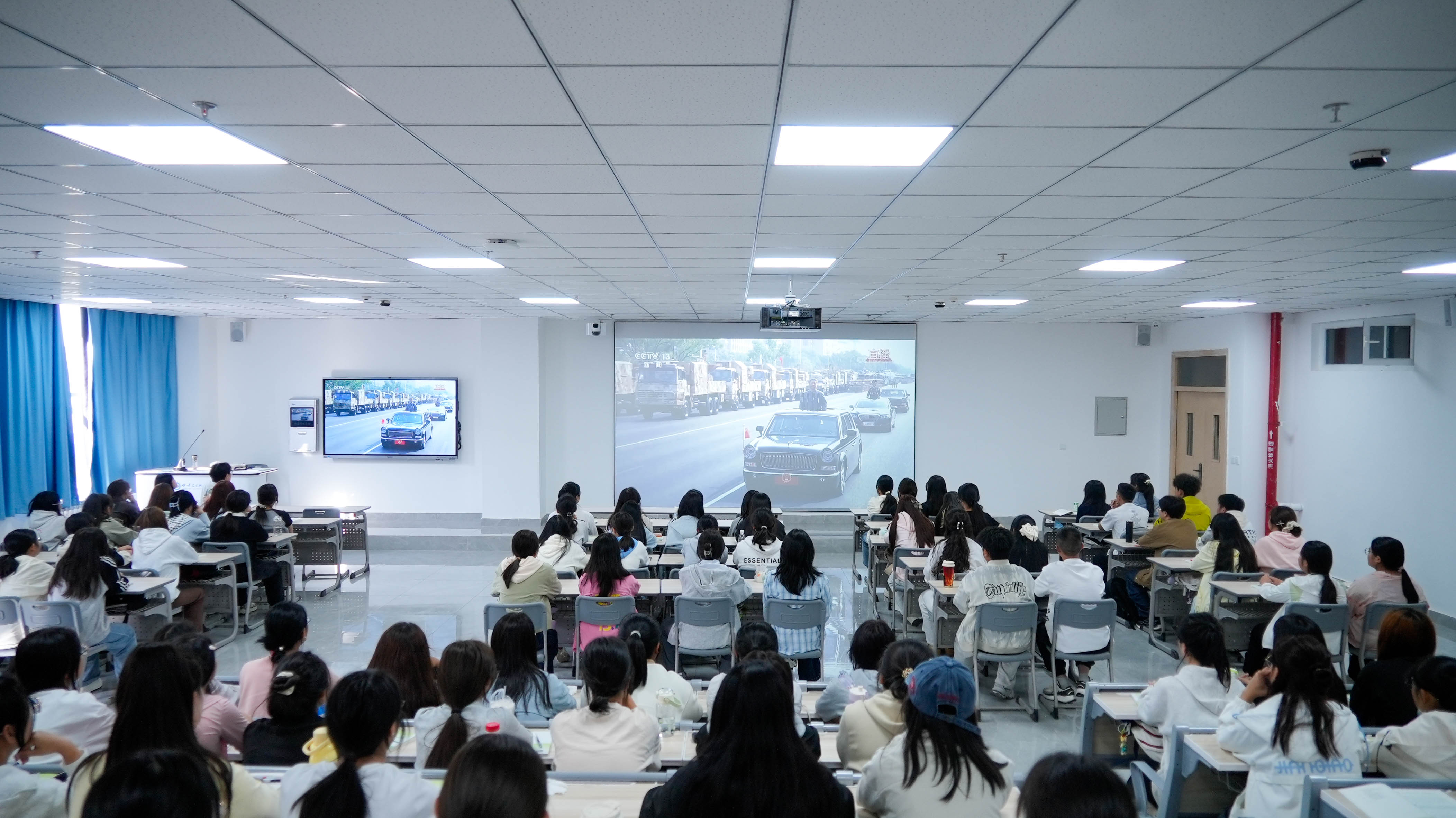 9月3日上午,纪念中国人民抗日战争暨世界反法西斯战争胜利80周年大会在北京天安门广场隆重举行,我校组织全体师生集中收看了直播。