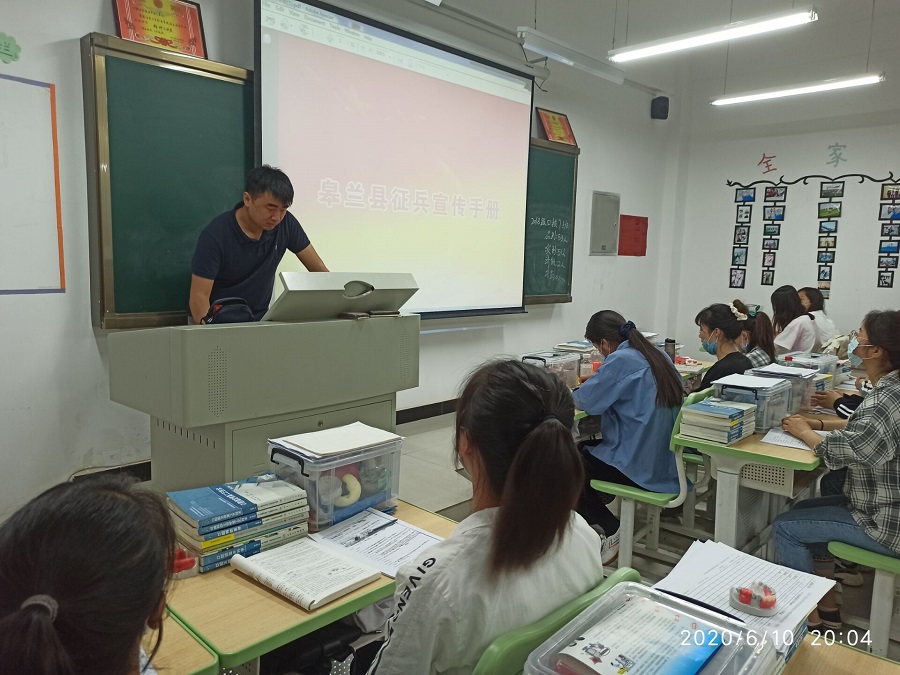 为积极响应上级号召,切实做好我校2020年大学生征兵宣传工作,营造浓厚的征兵工作氛围,充分激发广大适龄学生踊跃报名参军的热情,确保高标准、高质量圆满完成上级赋予的征兵任务,结合学校实际,学生工作处根据学校征兵工作领导小组的总体部署,安排各二级学院于6月18日至23日召开以征兵宣传为主题的主题班会,并要求辅导员、班主任亲自主持。