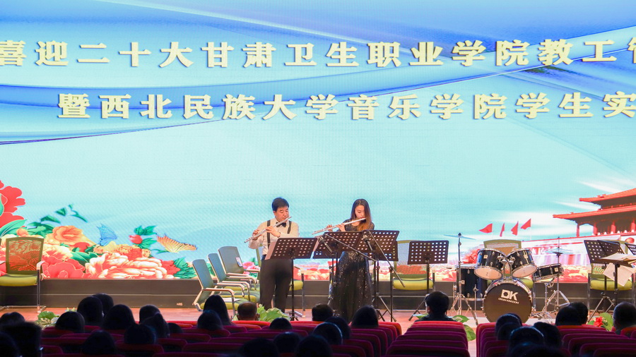 为进一步丰富校园文化生活,提高全校师生艺术素养,集中展示学校教工管乐队的学习训练成绩和西北民族大学音乐学院学生实习成果,4月19日晚,团委组织开展了“喜迎二十大”教工管乐队汇报演出暨西北民族大学学生实习成果展演活动,教工管乐队成员和西北民族大学音乐学院实习生在一号教学楼学术报告厅给师生带来了一场音乐盛宴。