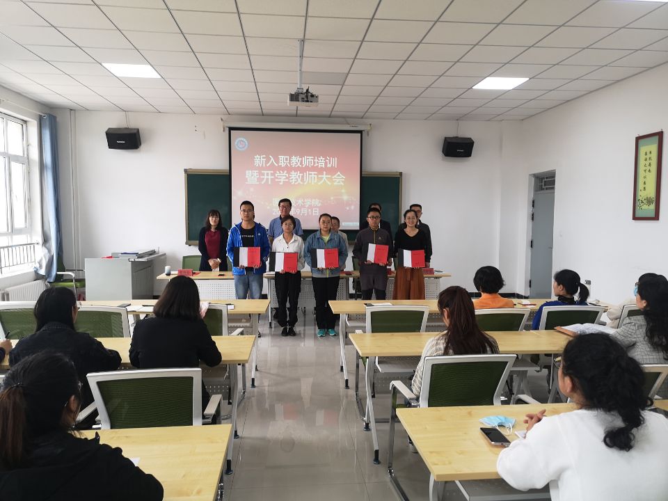 在举行的新入职教师培训活动中,5名新入职教师依次发表了朝气蓬勃的入职感言,他们表示有幸入职甘卫院,一定不负一名高校教师的神圣使命,勤奋学习,爱岗敬业,奋力完成教书育人的光荣任务;接着,院领导为新入职教师颁发了新教师手册,代表着满怀梦想的青年信心满满地跨入了教师队伍的行列;随后,所有参会教师与新入职教师一起进行了教师誓言宣誓,入职宣誓激发了新教师的职业荣誉感和自豪感,助力他们坚定职业信念和职业操守,提升教书育人的责任感和使命感。宣誓仪式后,张志钢院长做了主题为“不忘初心、牢记使命,做新时代合格的‘四有’好老师”的专题培训报告,他特别强调,教师兴,则学校兴;教师强,则学校强。希望广大青年教师能够自觉传承“勤奋 自强 厚德 博学”的校训精神,以强烈的使命感和责任感,将奋斗的汗水挥洒在学校建设的征程中,书写在立德树人的篇章里,为学院的建设发展贡献自己的智慧和力量。