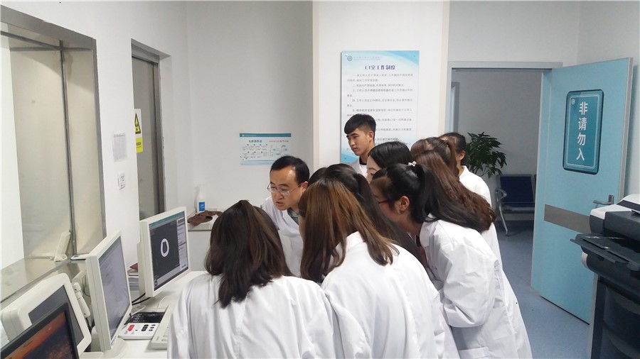 为深化校院合作,强化产教融合人才培养模式,并为顺利开展我校第八届医学影像技术专业学生技能竞赛CT检查技术项目,近日,医学技术学院医学影像系教师及20名学生赴学校教学医院—兰州新区第一人民医院进行CT检查技术实践训练活动。医学影像科马晓涛主任及全体工作人员热情地接待了学院师生,并按照竞赛实训要求做了认真安排,与我院教师共同对参赛学生进行辅导。