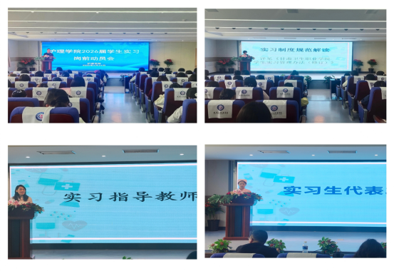 6月24日下午,护理学院在南丁楼多功能报告厅召开2026届学生岗前实习动员大会。会议由谢岚主持,学院班子成员、实习负责人、各班辅导员、实习指导教师、学生代表参会。